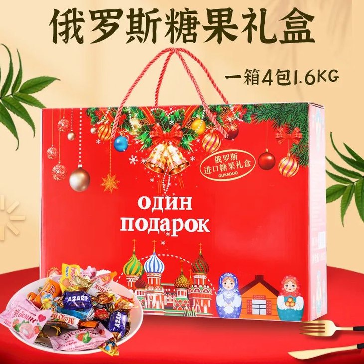 简约的俄罗斯风格礼盒,包装是喜庆的红色再配上俄罗斯经典元素,满满异国风情,精致又很喜庆,自家吃、送人都是很拿得出手~十几款糖果,4大袋,足足3.2斤的重量,几乎都是夹心和巧克力,成本加倍不加价,只要166积分+139元!!