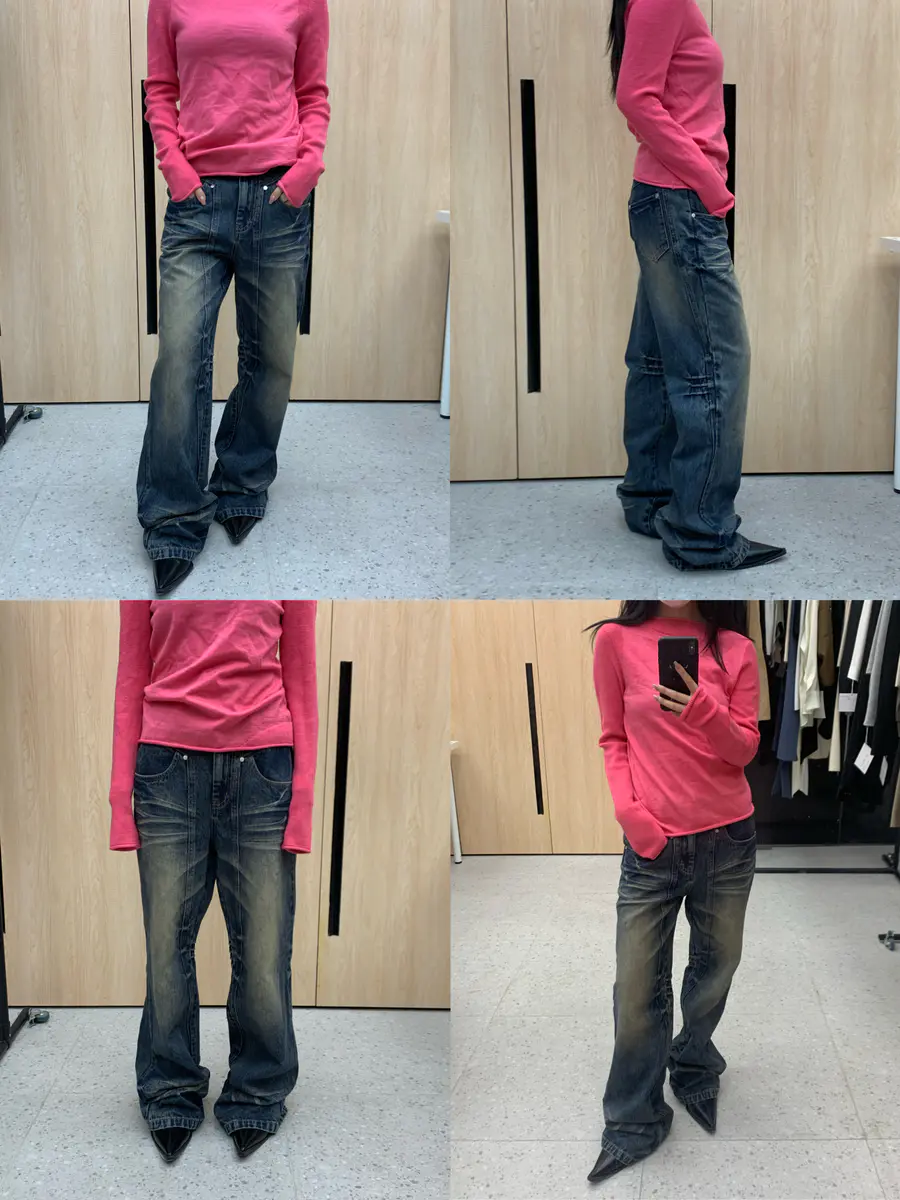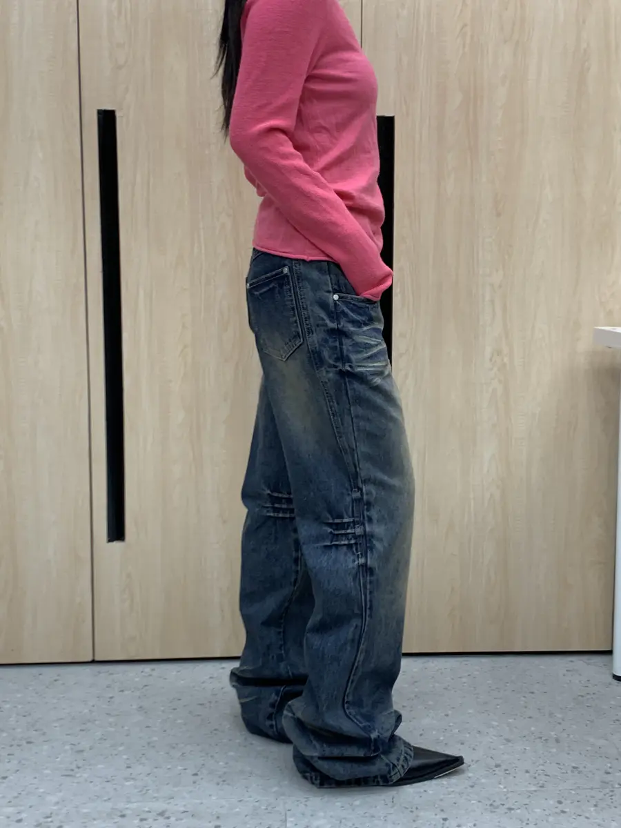 “非装饰”猫须结构直筒裤