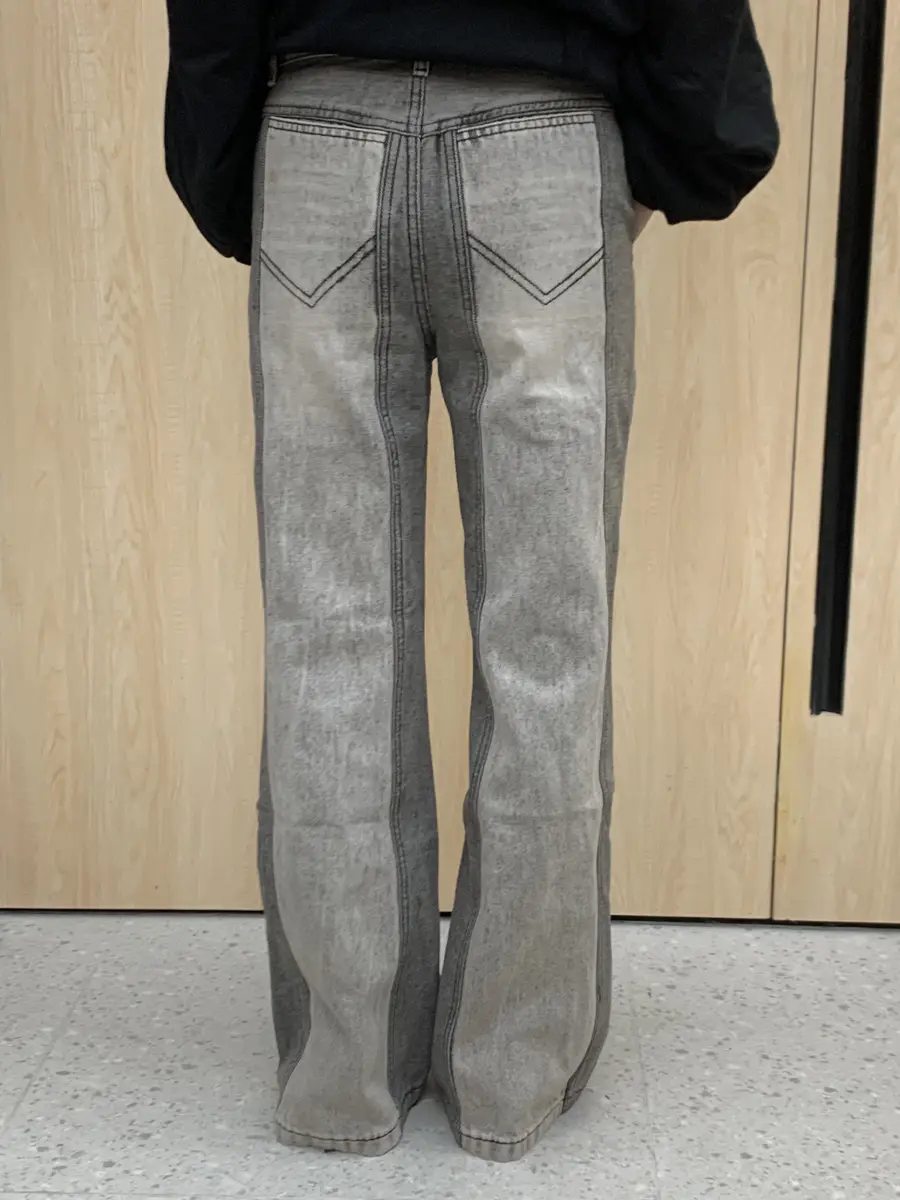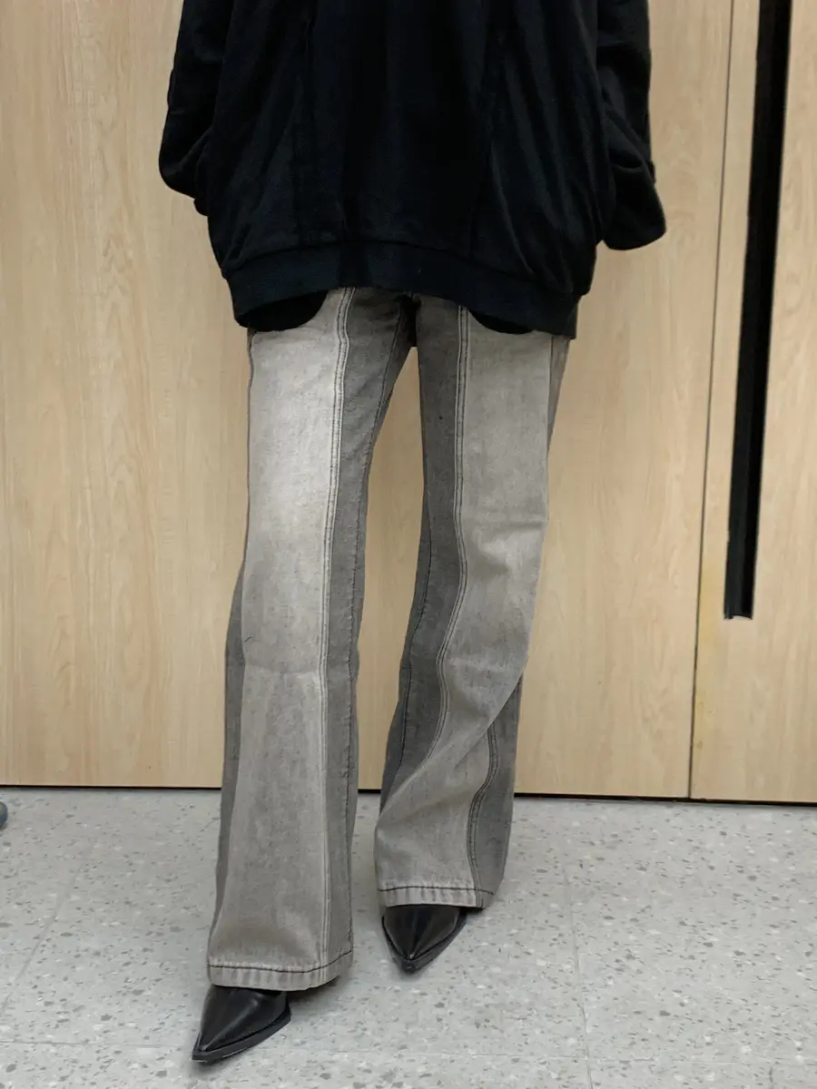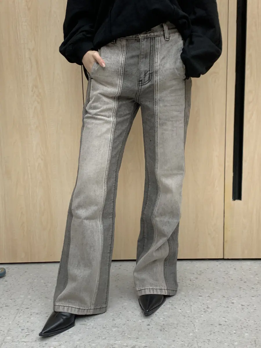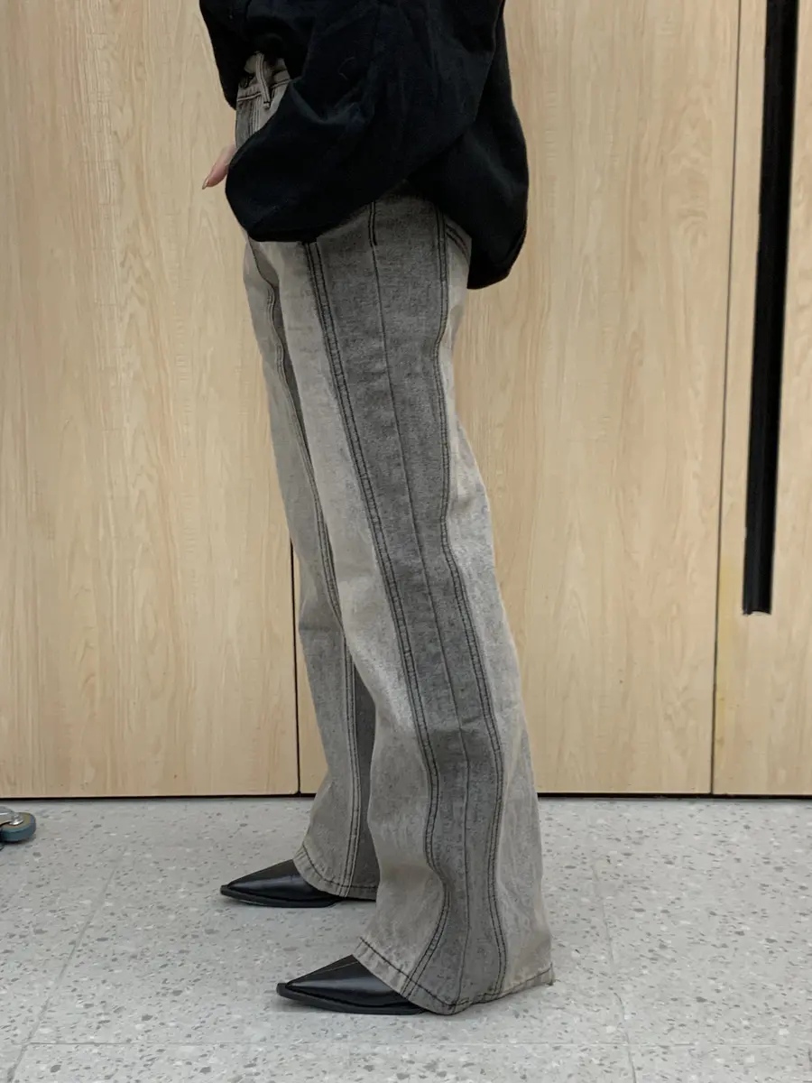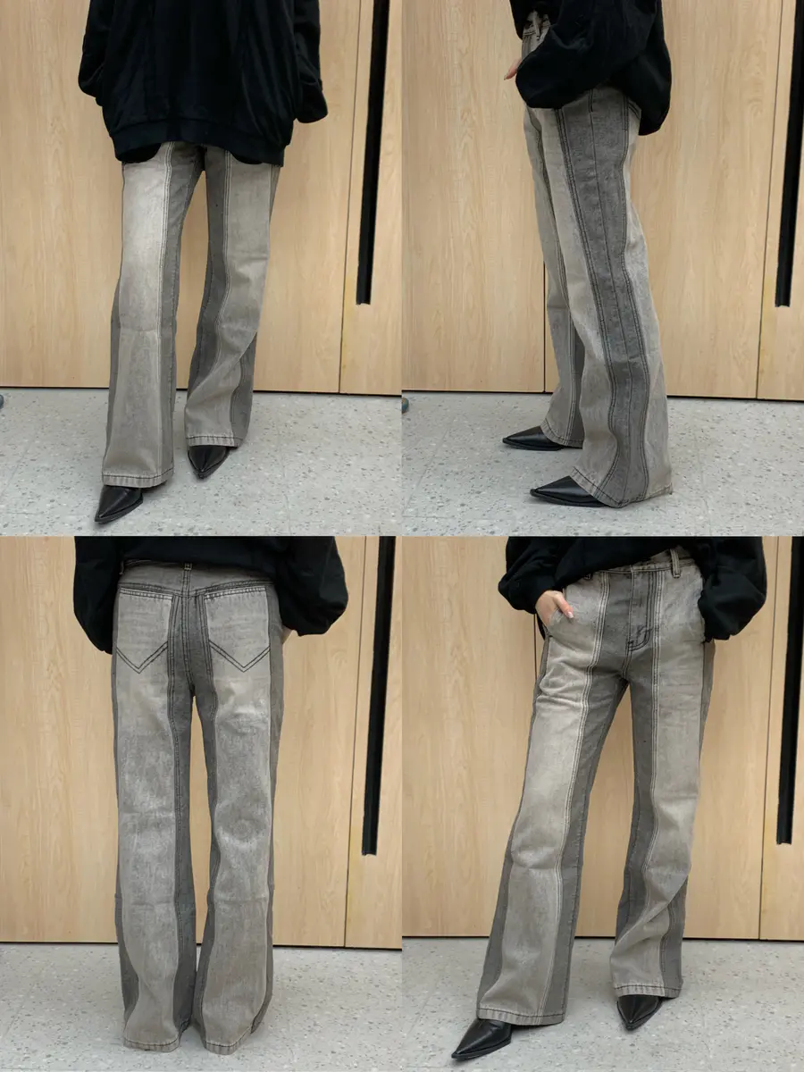 “谍照”拼色直筒微喇裤