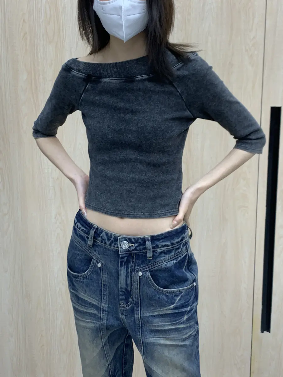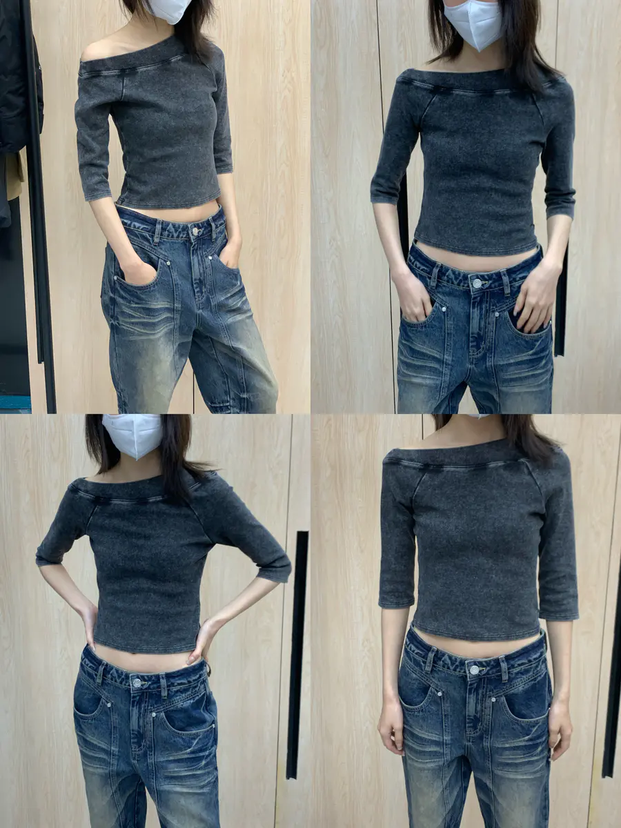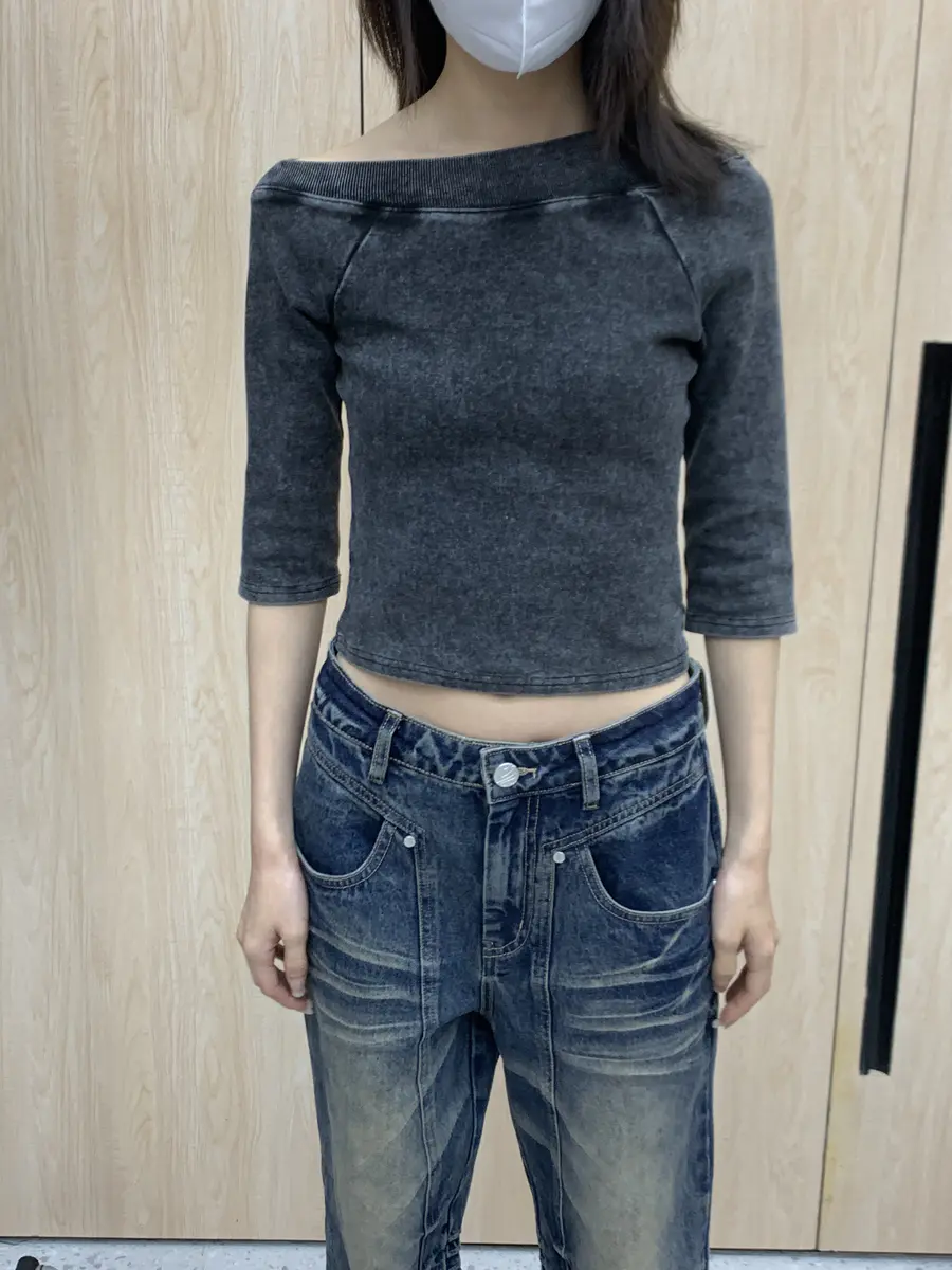 “沉默失真”水洗黑撞色T恤
