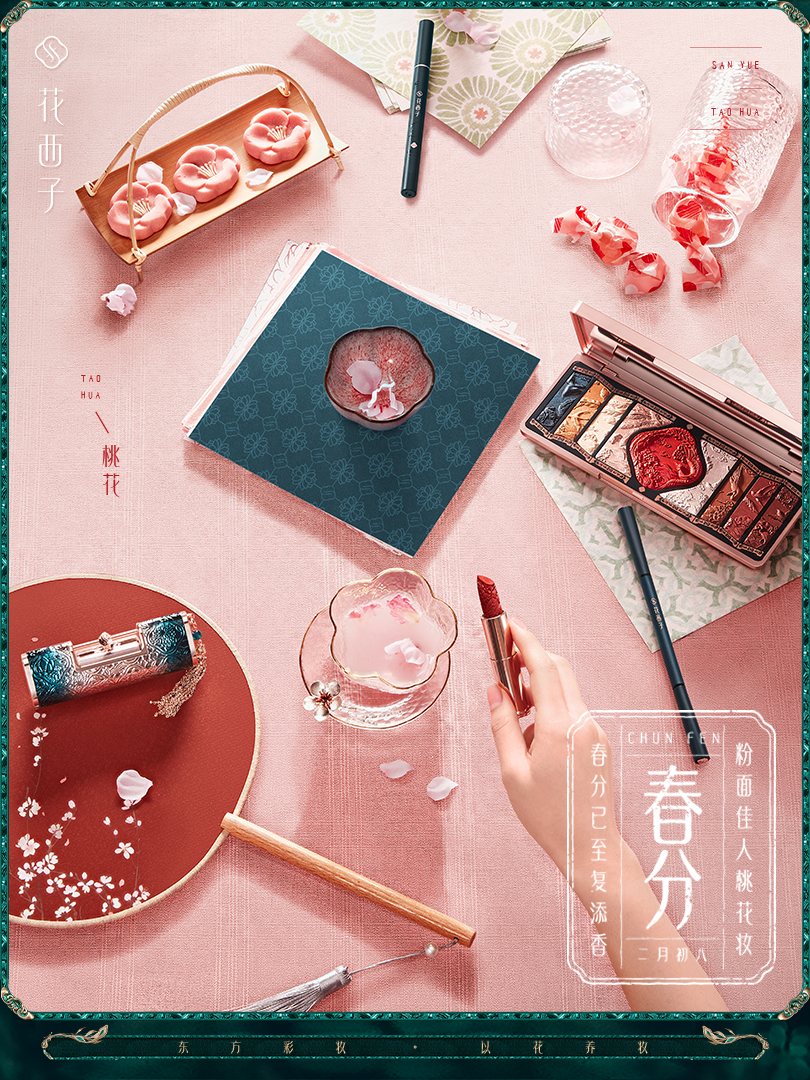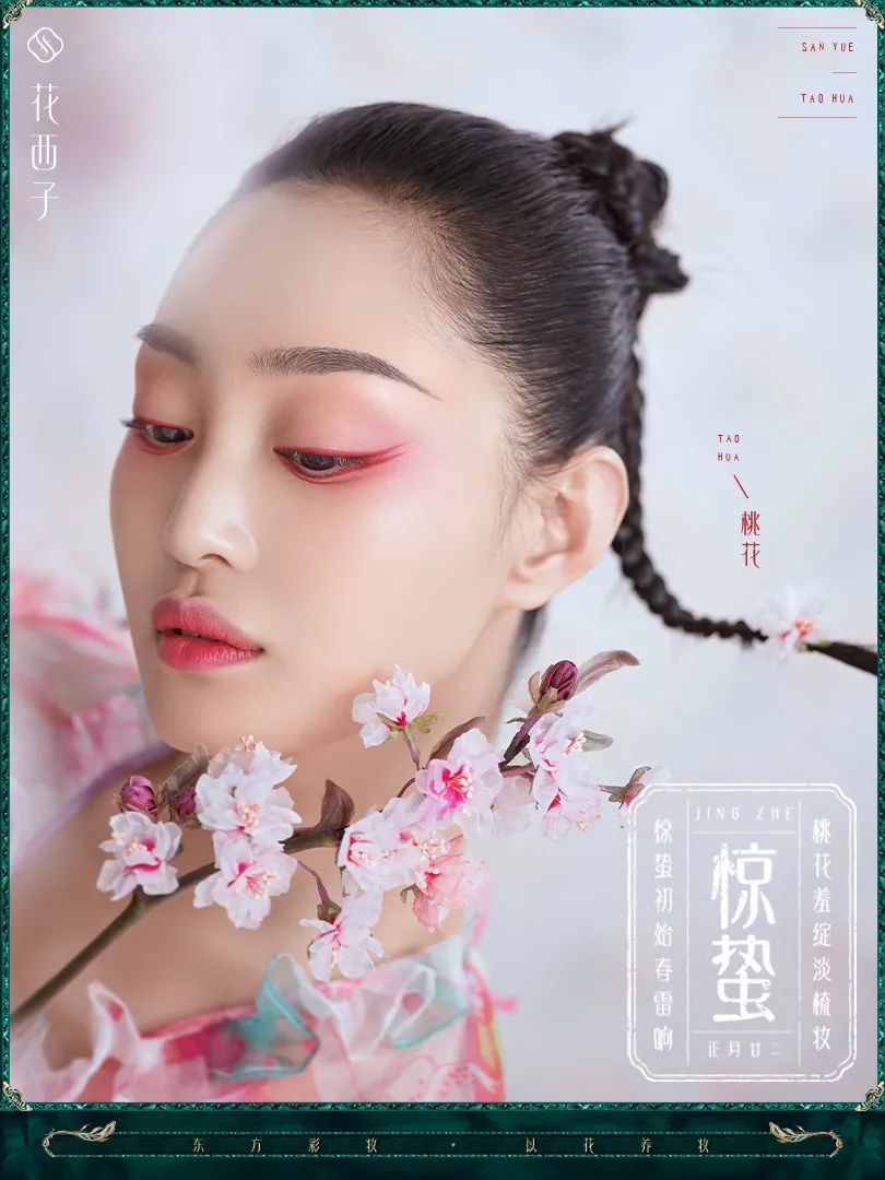 「惊蛰妆」提取桃花花色为主色调,