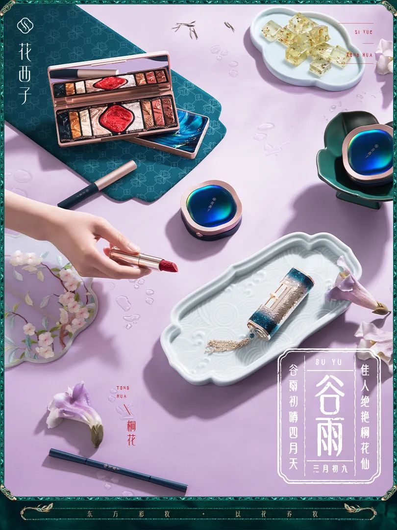 「踏青妆」提取桐花的花色为主色调,