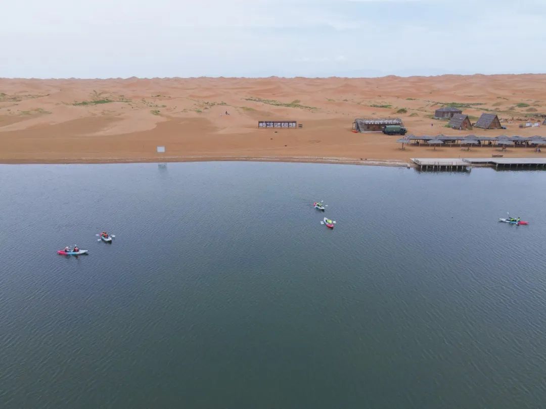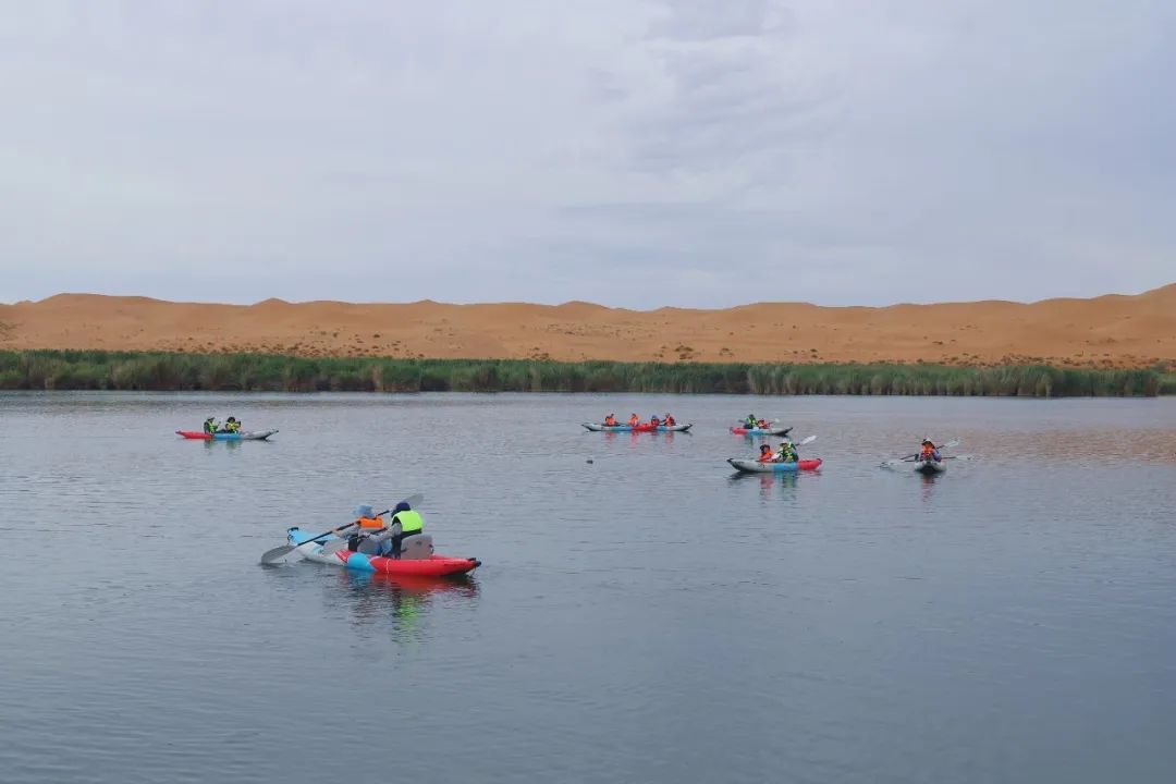 在沙漠里看见这么一大片水域是一件很神奇的事,地下水喷涌成湖,在这里玩皮划艇,接着是期待已久的越野车穿越,失重感很好玩,但刺激与晕得七荤八素同时存在,反观队员,大家看着状态都不错。