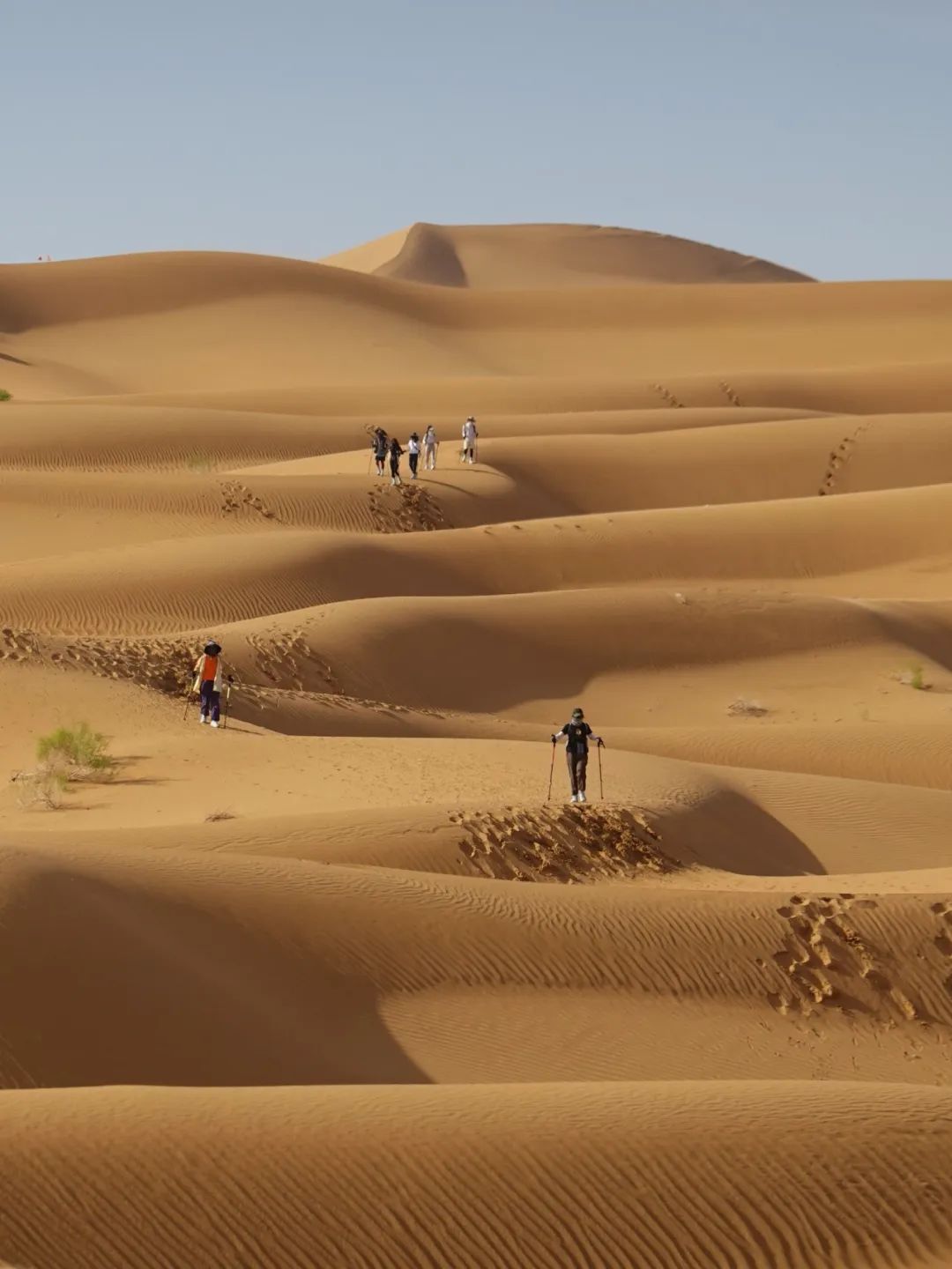 越往深处走,沙漠愈发纯粹,世界简单到只剩天与地,人如蝼蚁般渺小,脚下的路却与远方并无二致。