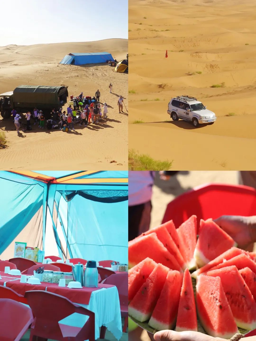 全程后勤保障车+队医+摄影师跟随,配备卡车运送物资+全程含餐+热水洗澡,这对条件有限的沙漠徒步线而言无疑是高配。