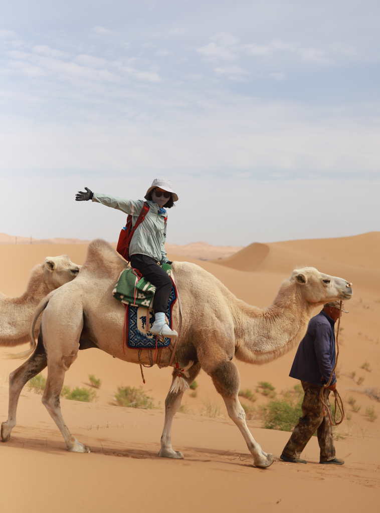 而大型沙漠动物,自然离不开骆驼。第一次亲密接触,它的体型比想象中还要更大。但与马不一样,骆驼很温顺,我一下就喜欢上了这种动物。