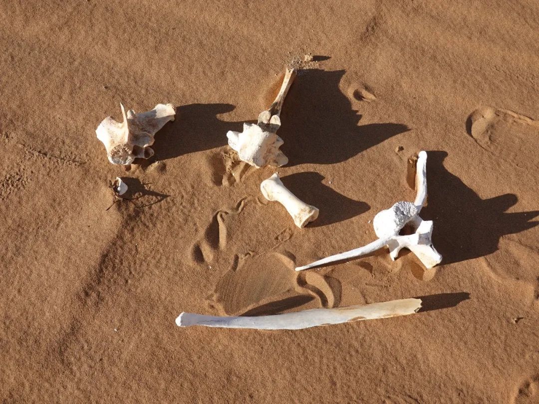 之所以提到三毛,是因为我和队员朱老师在徒步路上,偶然发现一幅骨头,不太完整,但是有好几块,把它们拼凑在一起,也没能辨别出到底是什么动物。
