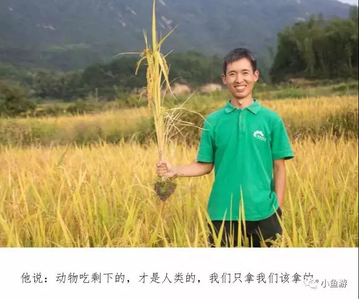 我不评判他的观点。但他就这样坚定地以永续的自然农法,坚持尊重自然,顺应自然,不使用任何农药、化肥、除草剂,善待大自然中的万物生灵,积淀并构建可行的科学种植体系,全力以赴积极探索推行自然农耕,既要生产安全的五谷,又需保护一方山野田园的生态。