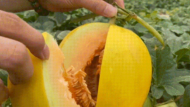蜜瓜切开芳香浓郁扑面而来,汁水顺着切口缓缓流下,如蜜糖般,香甜多汁在它身上体现的淋漓尽致!