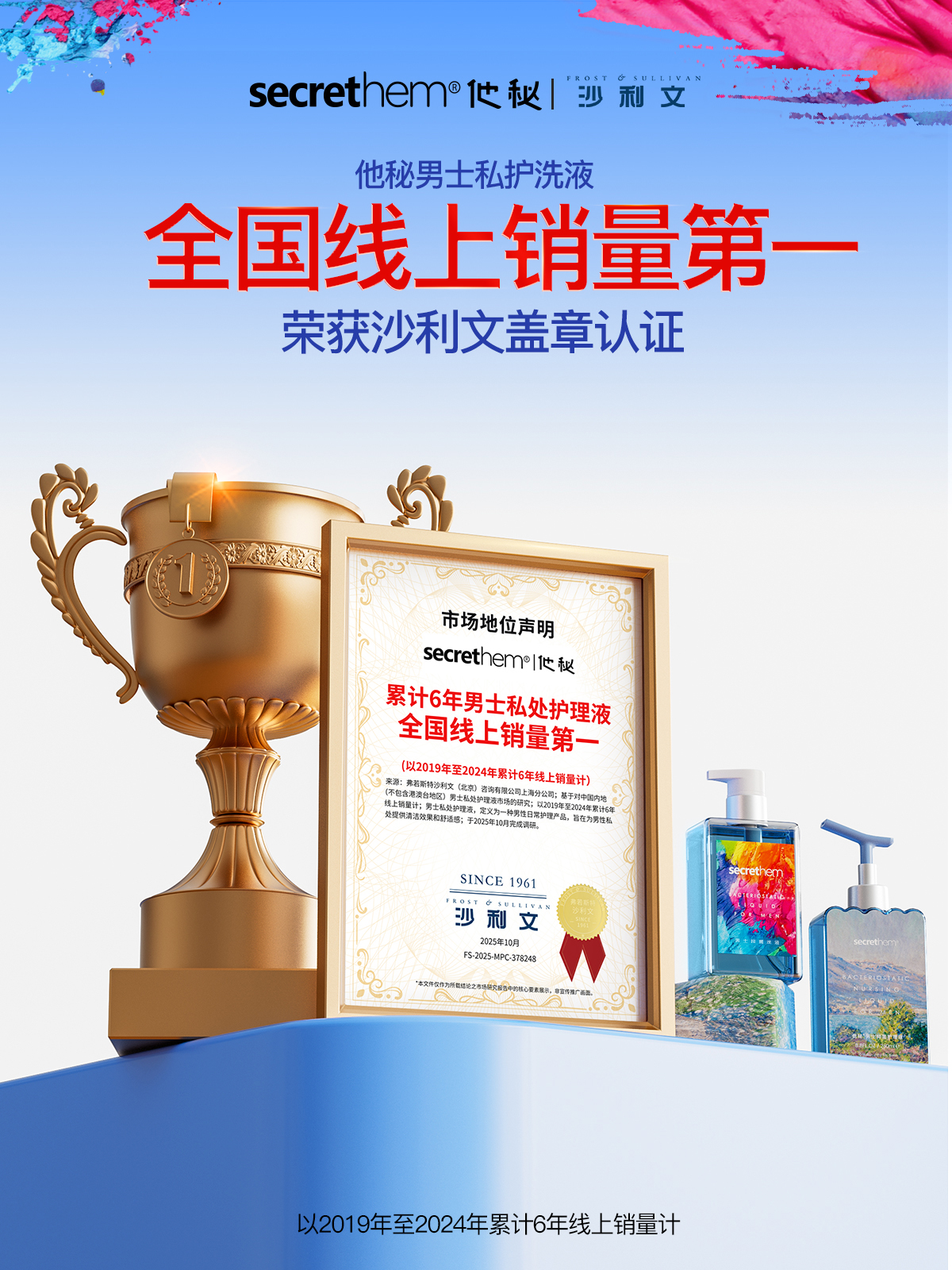 明星产品他秘男士私护洗液,荣获「累计6年男士私处护理液全国线上销量第一」,千万用户的认可,是市场信赖的坚实印证!