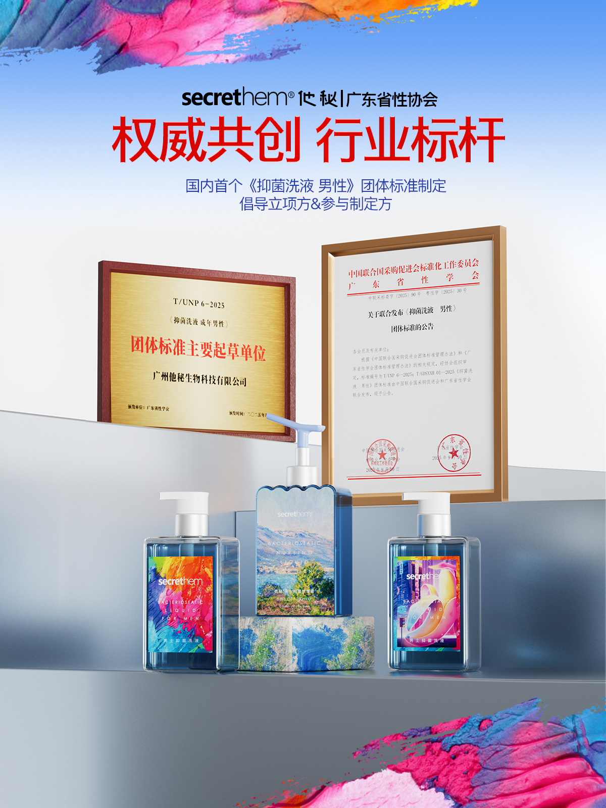 全国首个成年男性抑菌洗液团体标准正式发布,他秘作为国内首个男性抑菌洗液的倡导立项方&参与制定方,以专业与责任引领行业升级,我们呼吁所有行业从业者保持敬畏之心,以标准为尺、以品质为魂,共同守护消费者健康,共筑行业良性发展生态!
