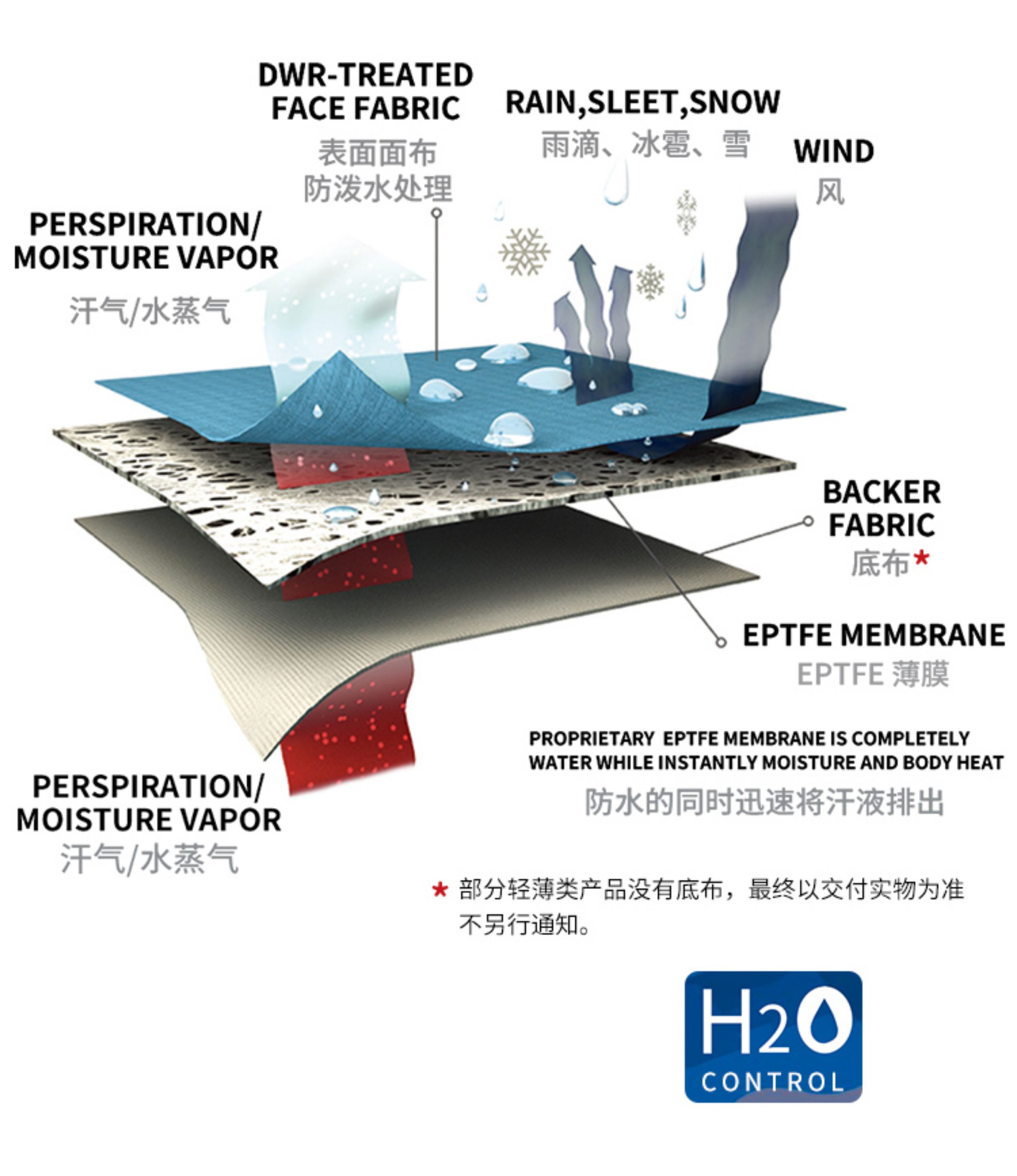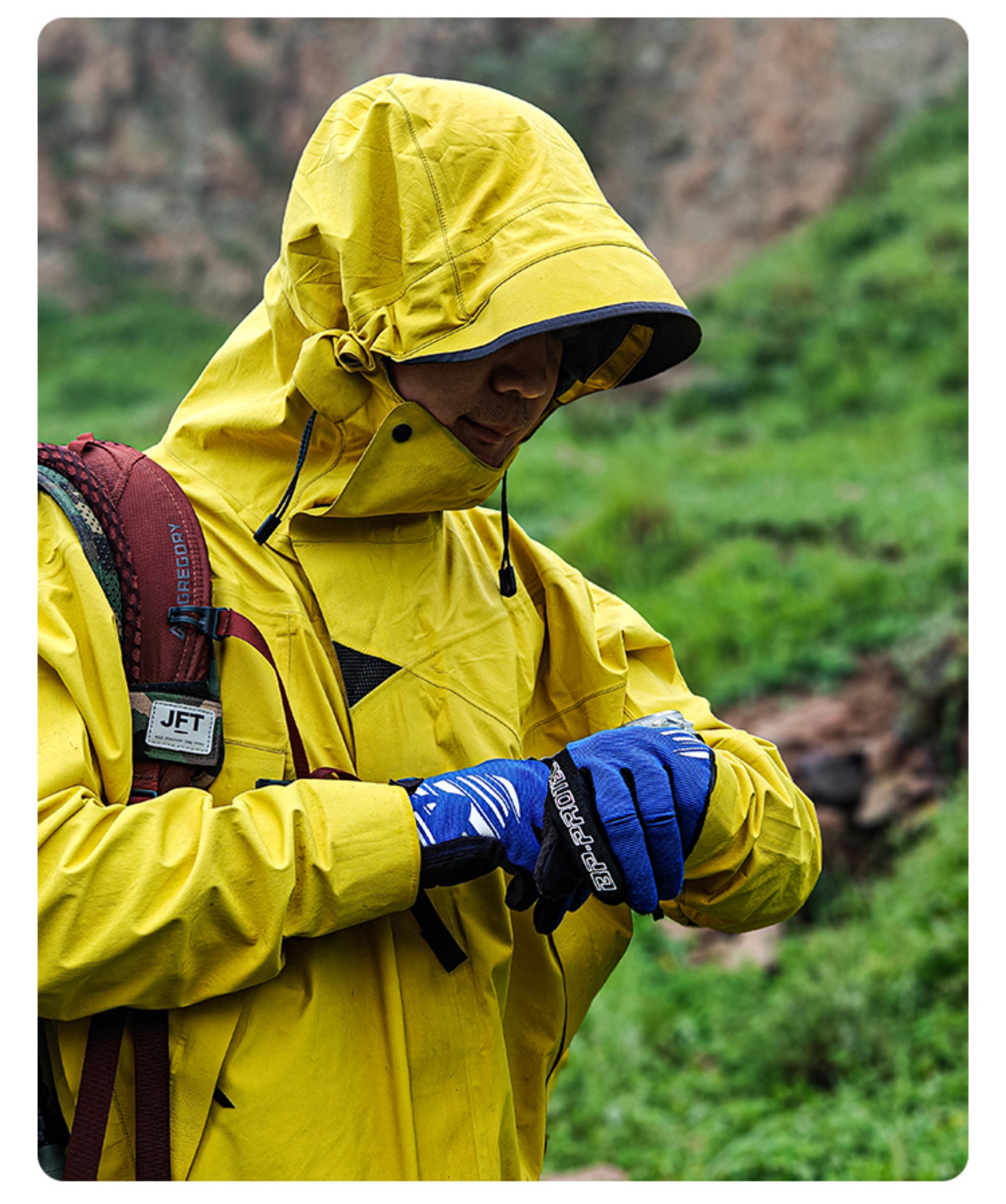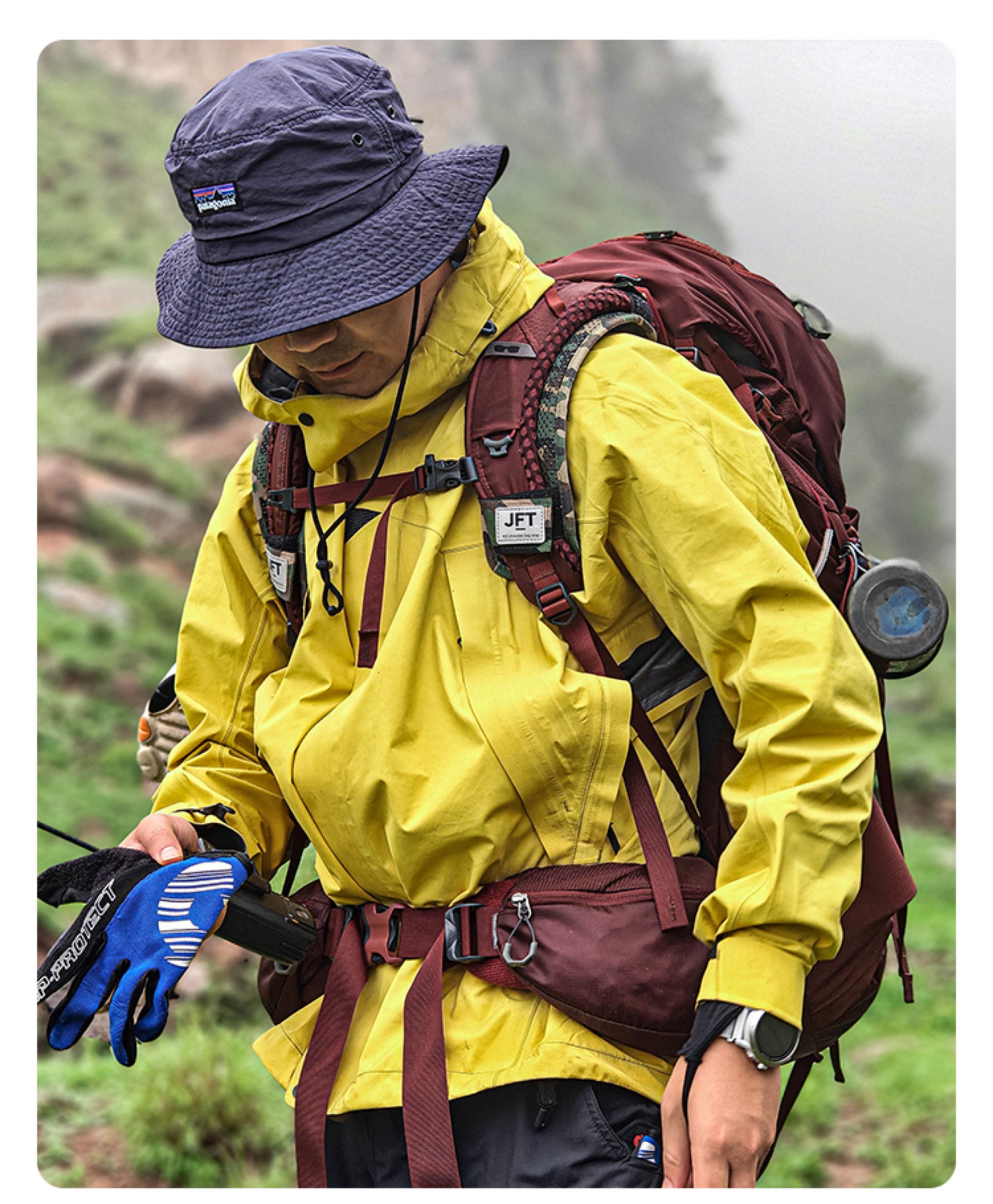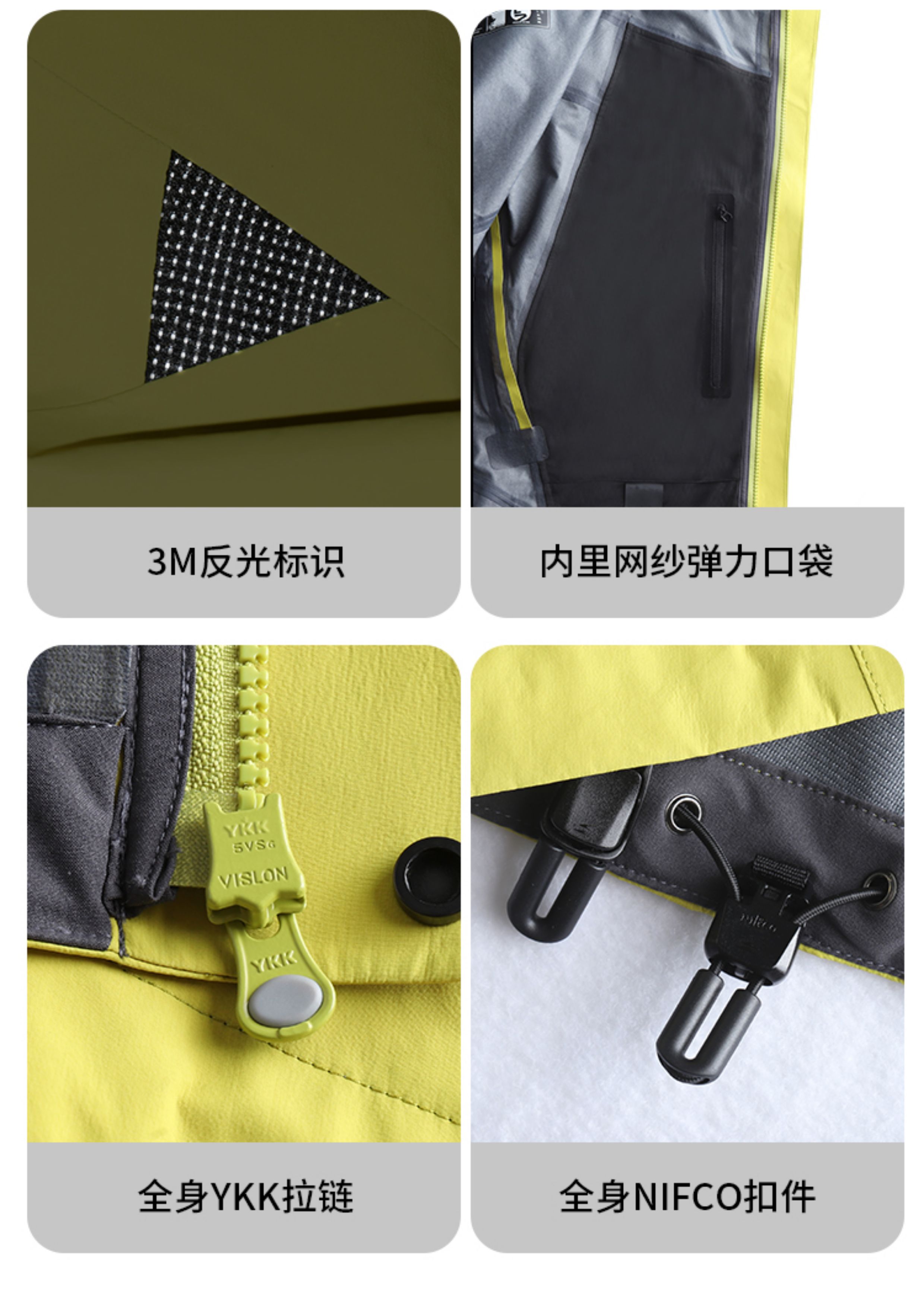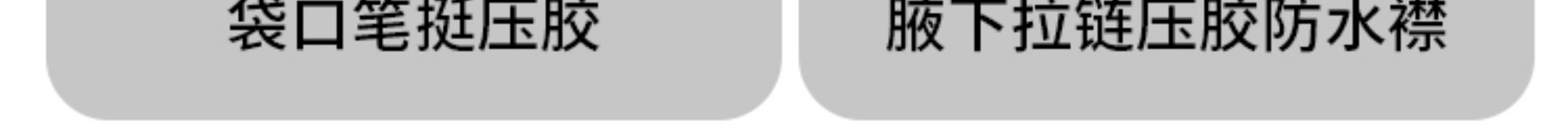 全压胶无缝工艺:所有内里接缝热封贴合,100 % 防风防雨。