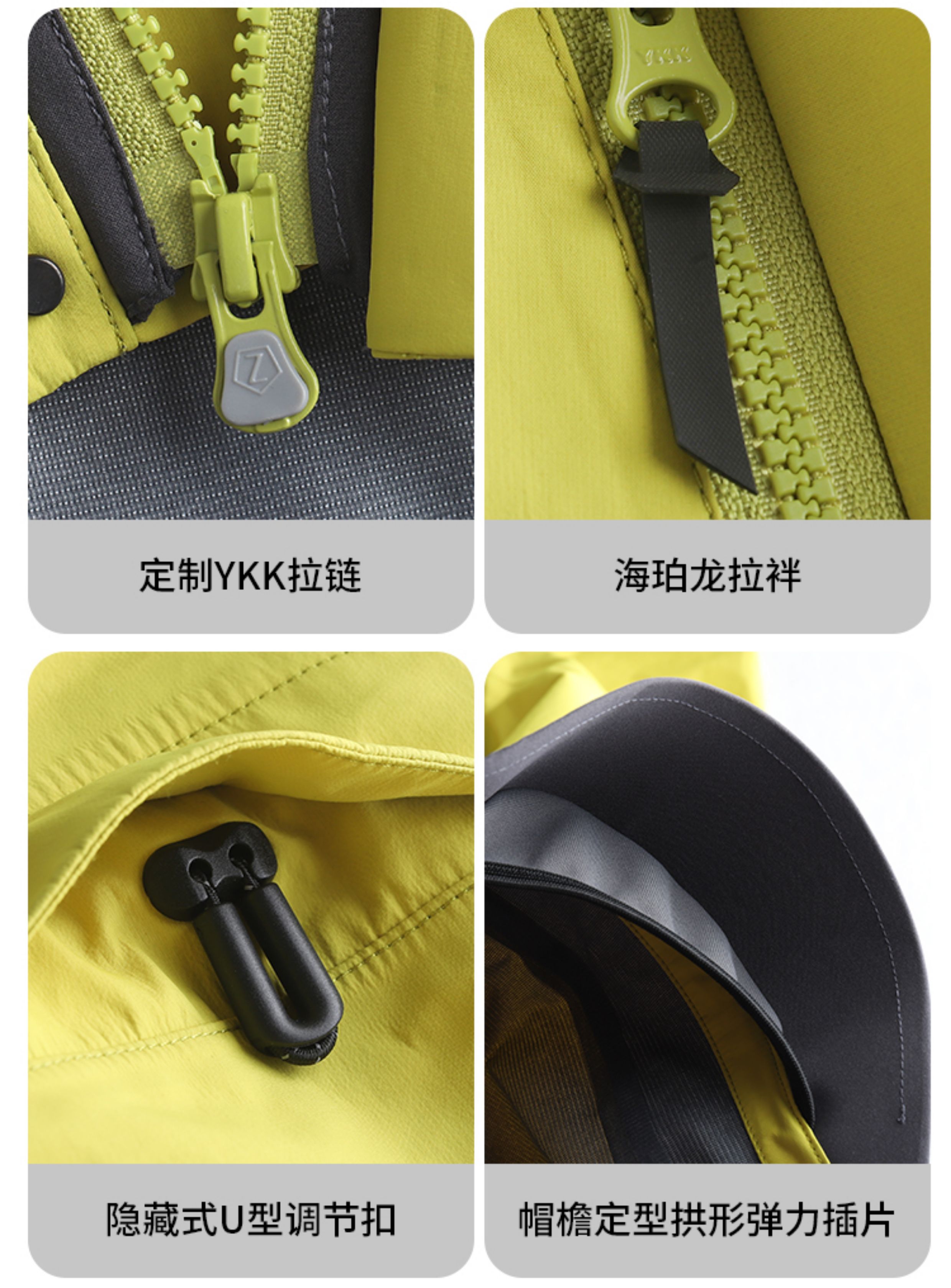 • 复古海帕龙袖口 + UTX 扣具,下摆日本 NIFCO 扣具,单手即可快速调节。