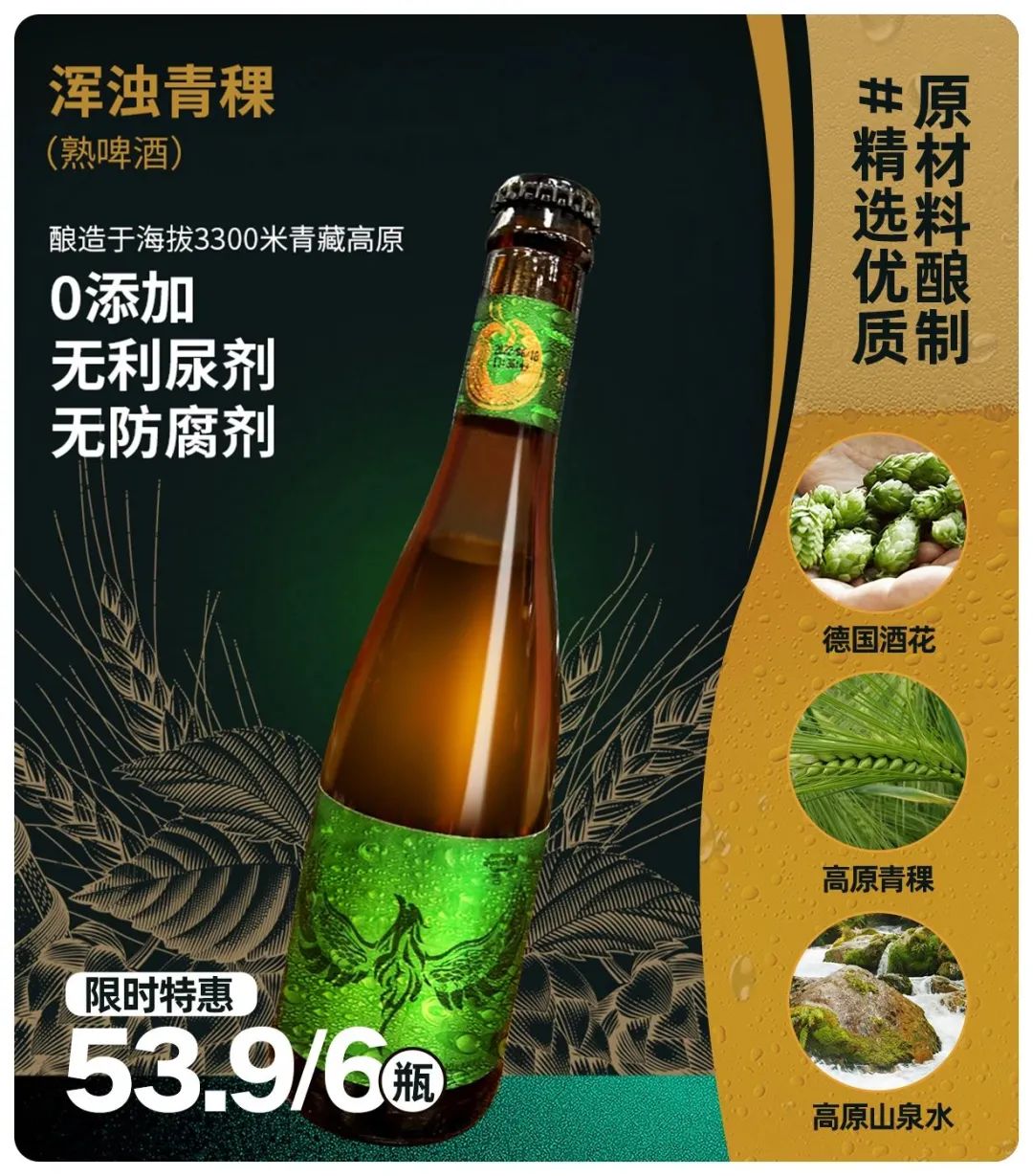 而“孔翎青稞啤酒”,不添加利尿素以及防腐剂,是可以放心喝的好啤酒。