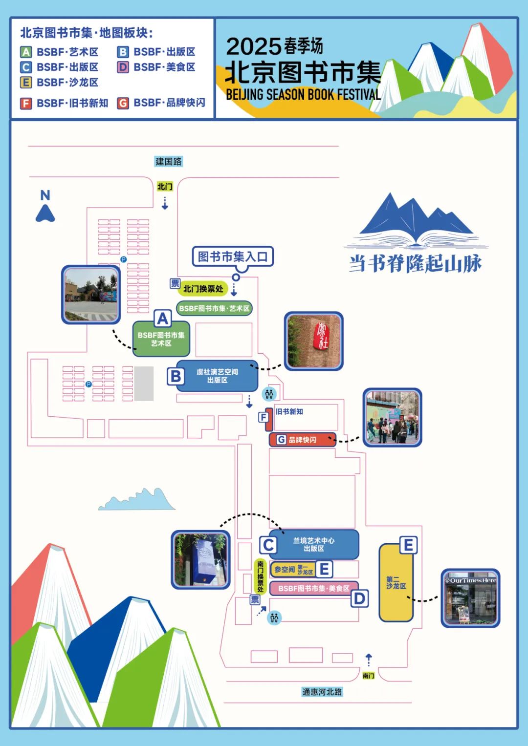 本次北京图书市集·春季场活动分布于郎园Vintage的虞社演艺空间(室内)、北广场(室外)、参Space、OurTimesHere等场地。