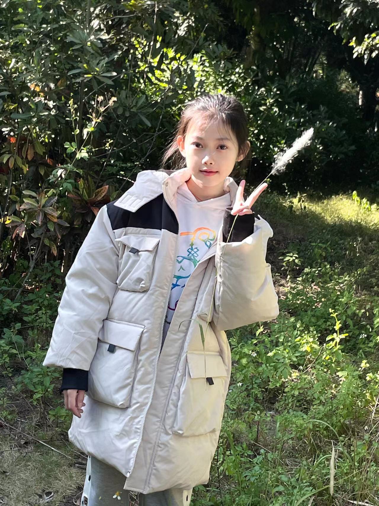 穿一件户外工装感羽绒,整体造型感满满。静谧高贵星空紫,清新干净米色,无论哪一种颜色,都能在枯燥冷寂的天气带来几分色彩感。内里填充90白鸭绒,温暖感满满。