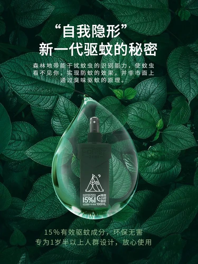 森林地带专注驱虫25年,主打户外硬核驱蚊,采用望远镜军事风格,由五大世界权威机构认证和联合推荐,能够有效针对户外恶劣环境的毒蚊。其哌卡瑞丁配方温和不刺激,安全高效,面部也可用,再也不需要为户外运动中蚊虫叮咬面部而烦恼。