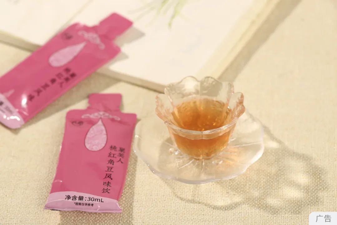 相比起难熬难喝的汤药,我们把桃红角豆风味饮做成了开袋即饮的小甜饮。