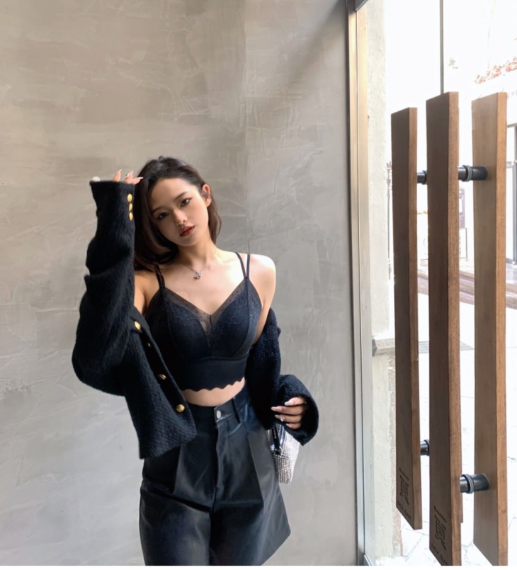 外穿的时候,可以学ins上的时尚博主,直接披一件西装外套或针织开衫,蕾丝外露非常时髦;