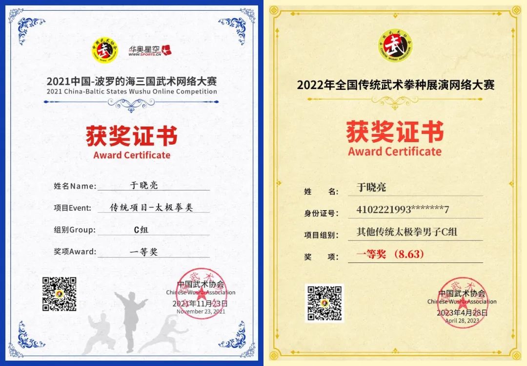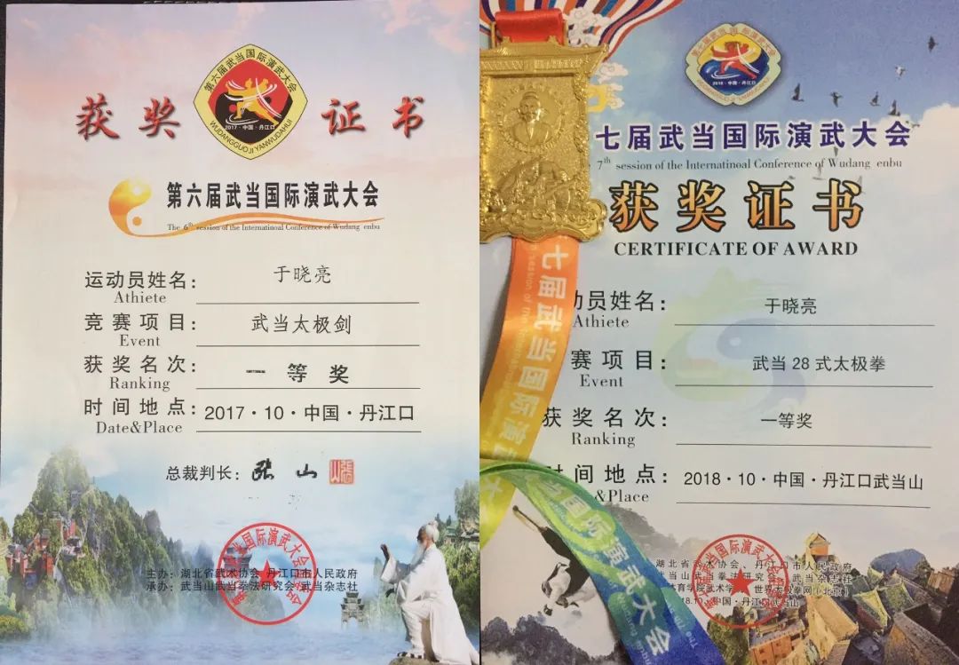 武当三丰太极剑一等奖,武当龙华拳银奖;