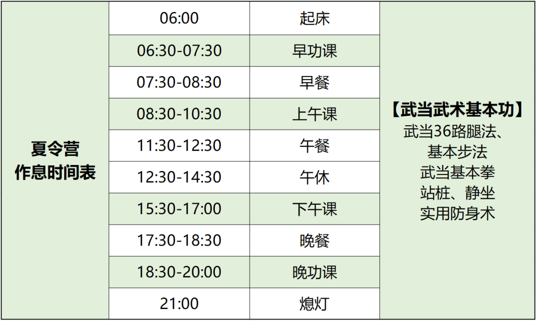 (注:第一天和最后一天为报道入营和结营,其他时间按照下面作息表上课,空余时间安排其他活动,如有调整另行通知。)