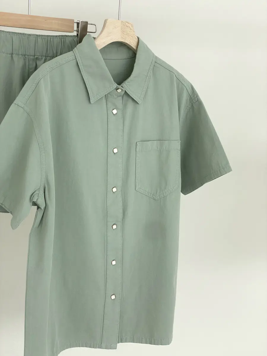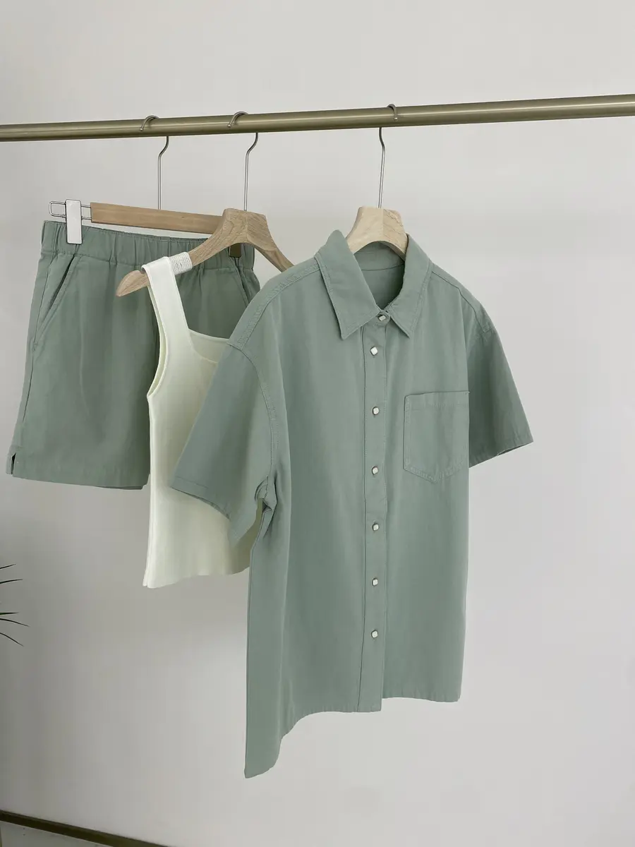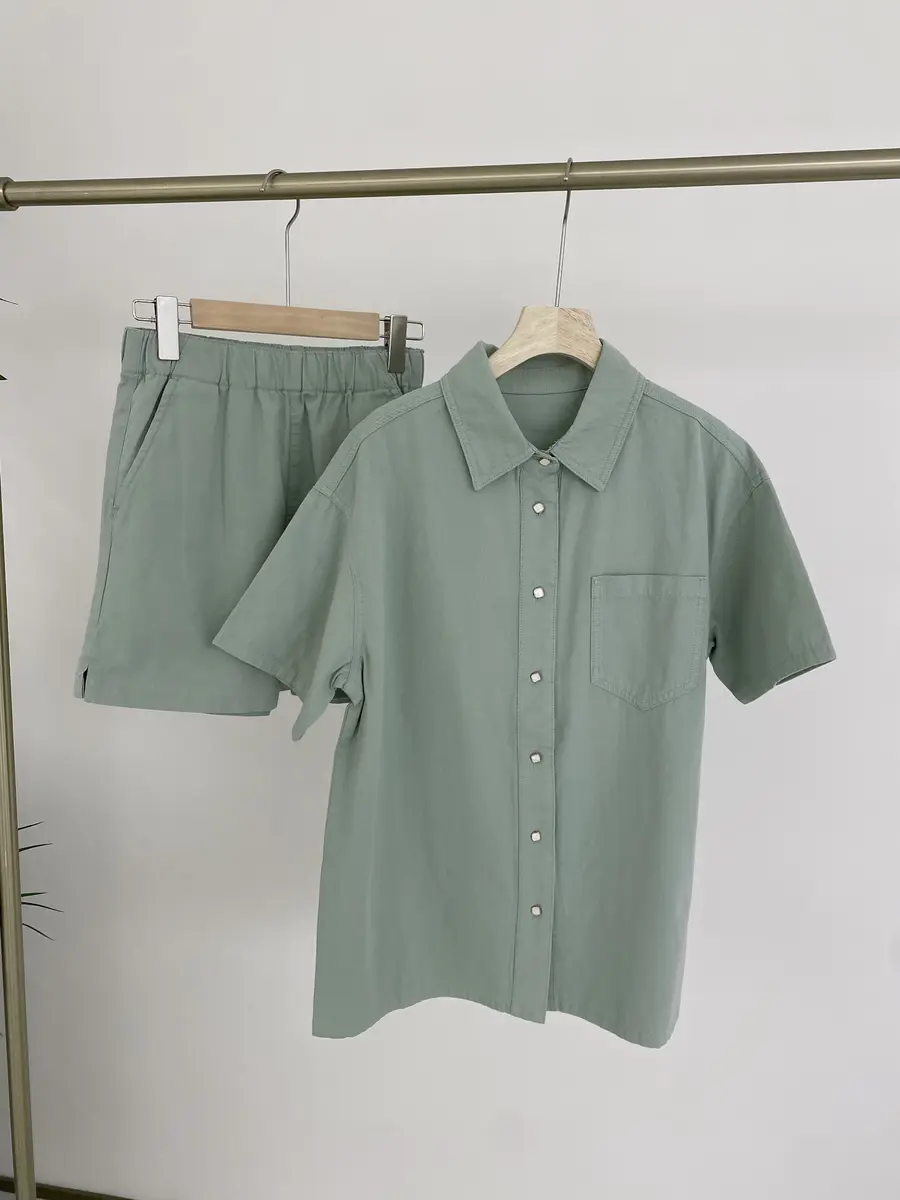 因为是纯棉牛仔材质,所以质感非常棒,衬衫上衣+短裤搭配,休闲又有少年感