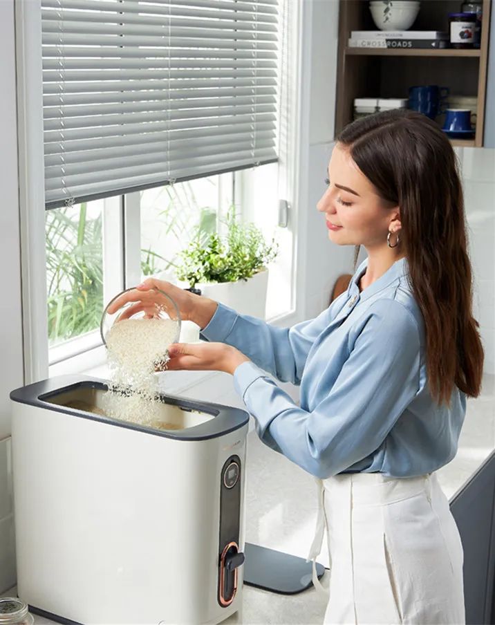 米桶容量足足有12kg,具有防潮、防虫效果,一体式设计,桶身没有任何缝隙,不与外界空气、水分接触,搭配密封圈,不用担心进灰尘、进虫、串味等常见难题。