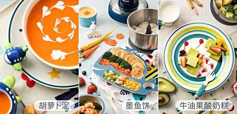 1.5L果蔬碗、1.2L绞肉碗、0.8L辅食碗,三个不同容量碗,健康分类,清晰的分类标示,随取随用。