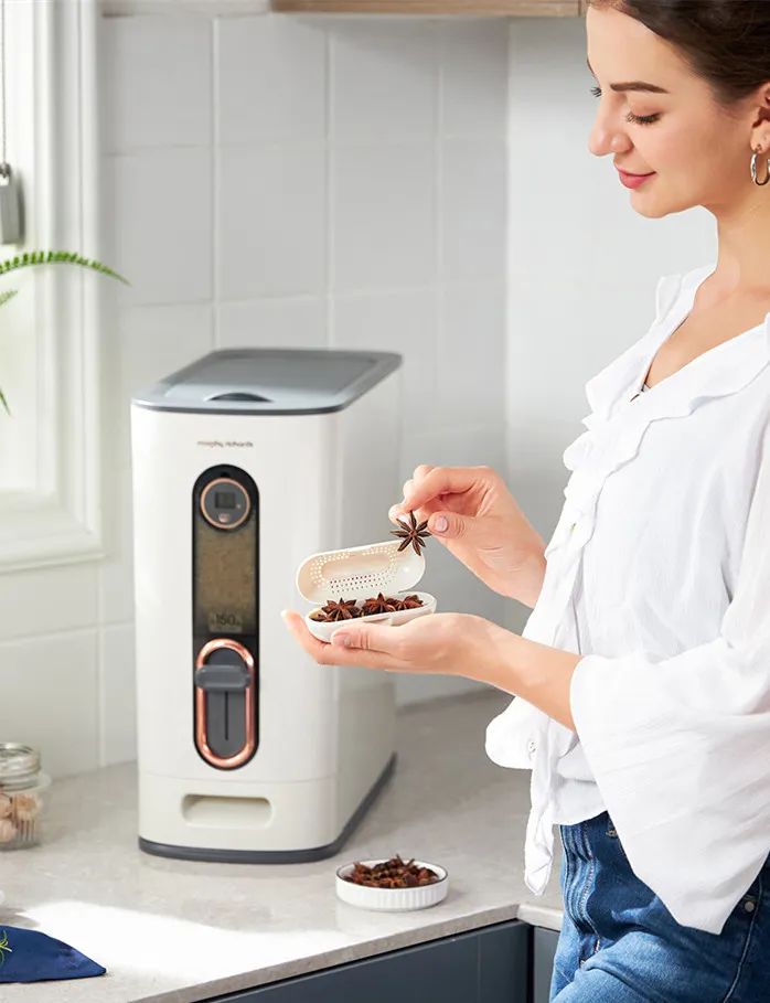 家里的米突然发霉?可能是温度的原因,需要一款密封的米桶——摩飞计量米桶!