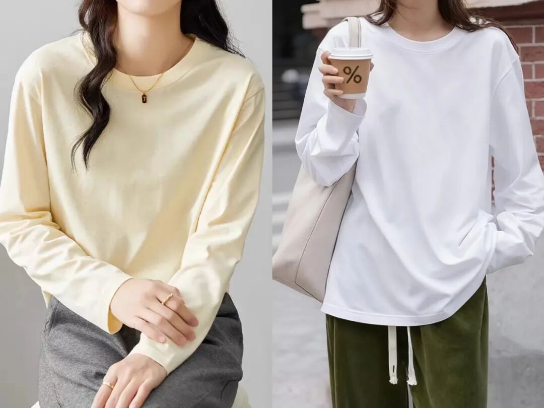 天气转凉,衣柜里最让人安心的内搭,绝对是——纯色长袖T。