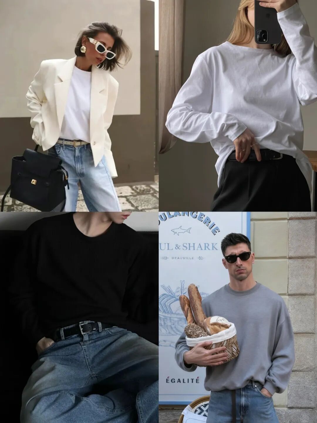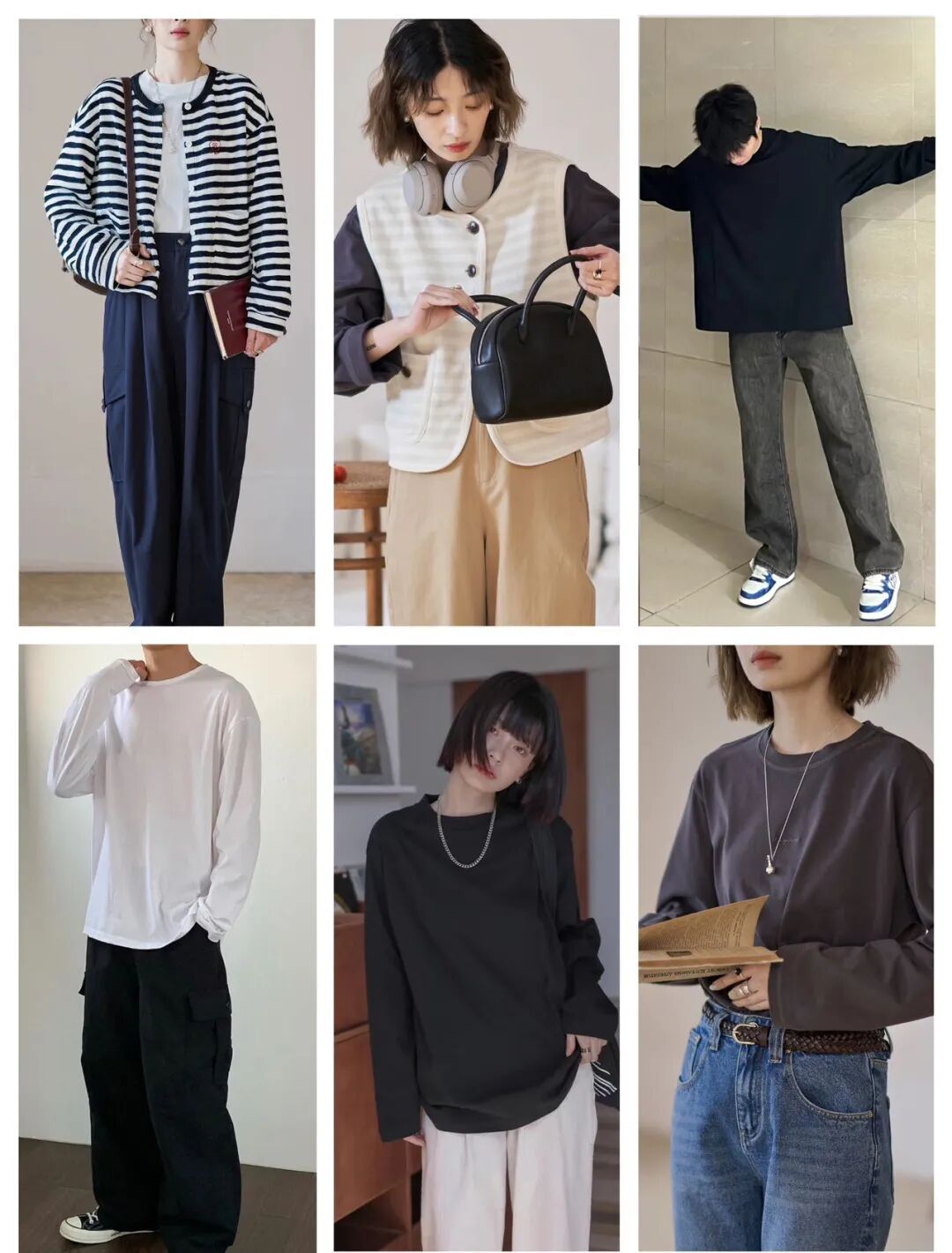 基础长袖的魅力,就在于怎么搭都不会出错。这次给大家选的是简约色,就算你不会穿搭也能穿得好看高级!