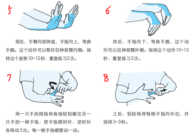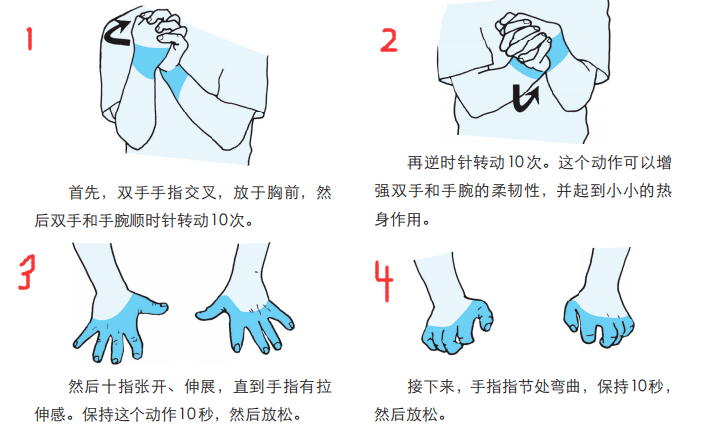 3、加强手腕部的肌肉力量锻炼,记住这些手部放松动作,时不时做起来!