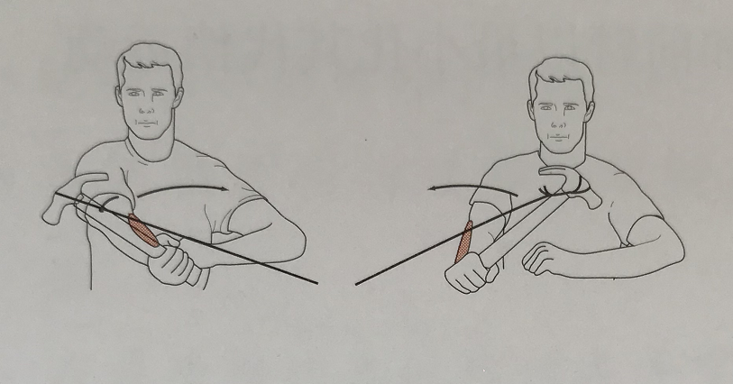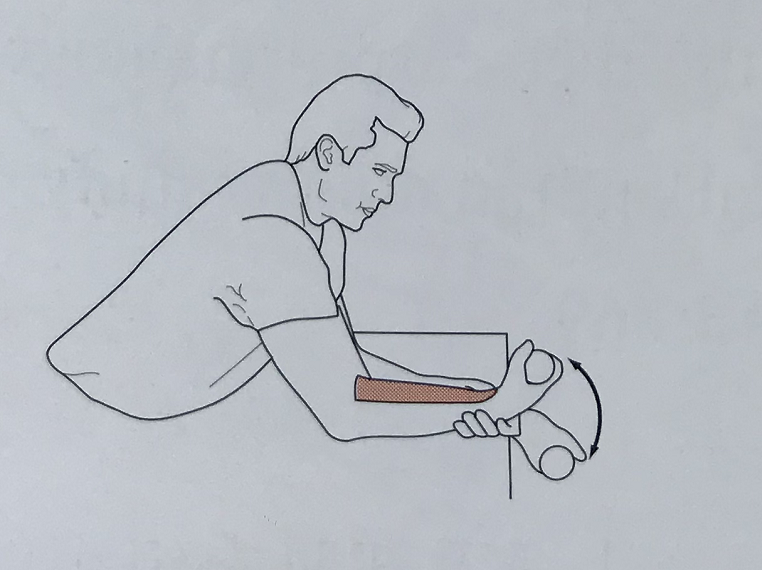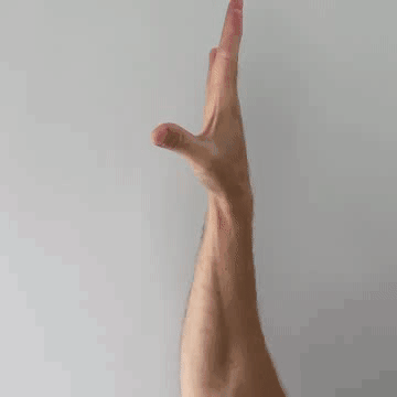 将以手掌向上开始,然后持续向外旋转手(旋后)到最大角度再持续向内旋转(内旋)到最大角度。保持这个姿势3秒,重复10次。