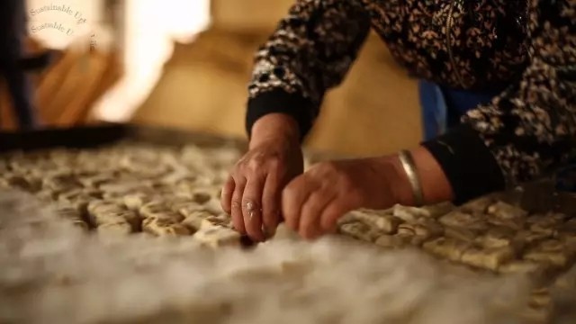 不仅如此,他还娶了位天生的好手当媳妇,才三年,就得了爷爷的点浆真传!现在孙媳妇怀着二胎,再个把月就要生了,就暂时没让她劳累,支她去给大伙做饭吃,过了晌午再来帮忙给豆腐坯翻身搓毛。比起一家人的常年分离和城市生活的压力带来的困苦,小伙子的选择成就了一家人的幸福,当然也成就了宝贵的技艺传承和你我的口福。