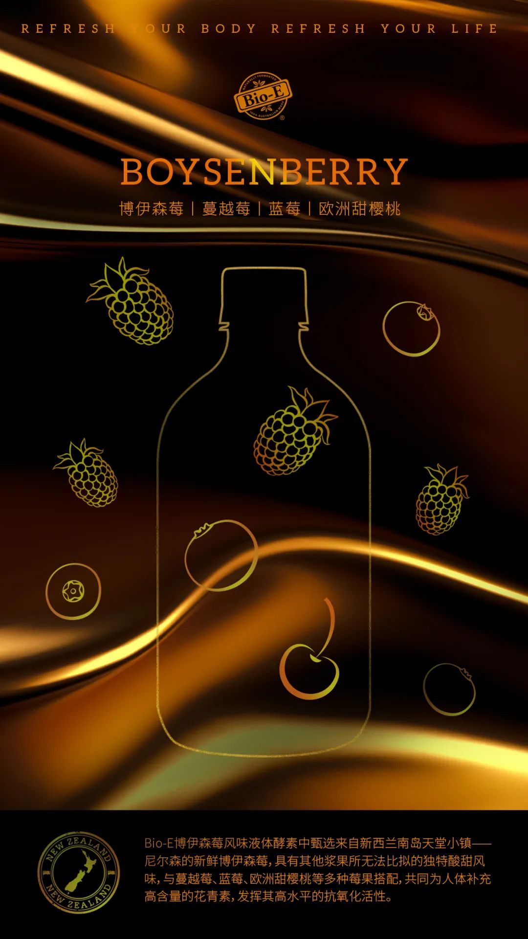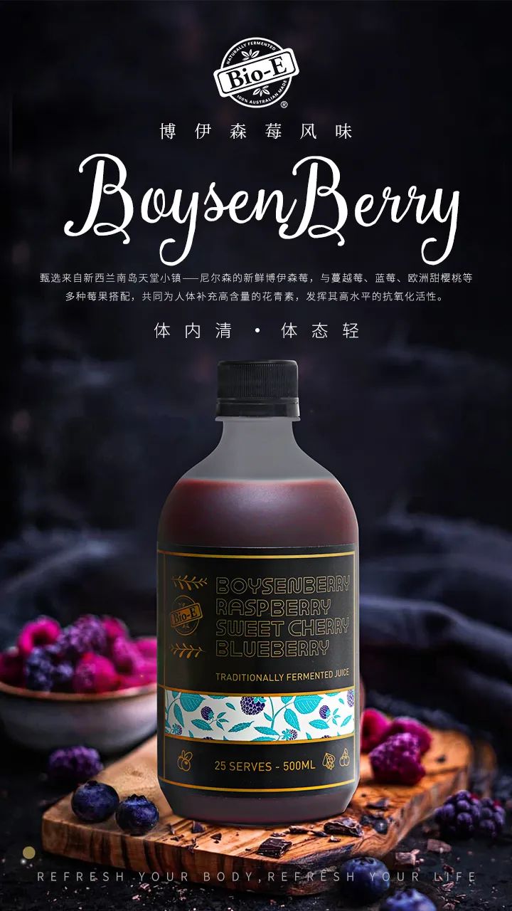 博伊森莓中含有花青素、鞣酸、叶酸等成分,具有优越的抗氧化特性。