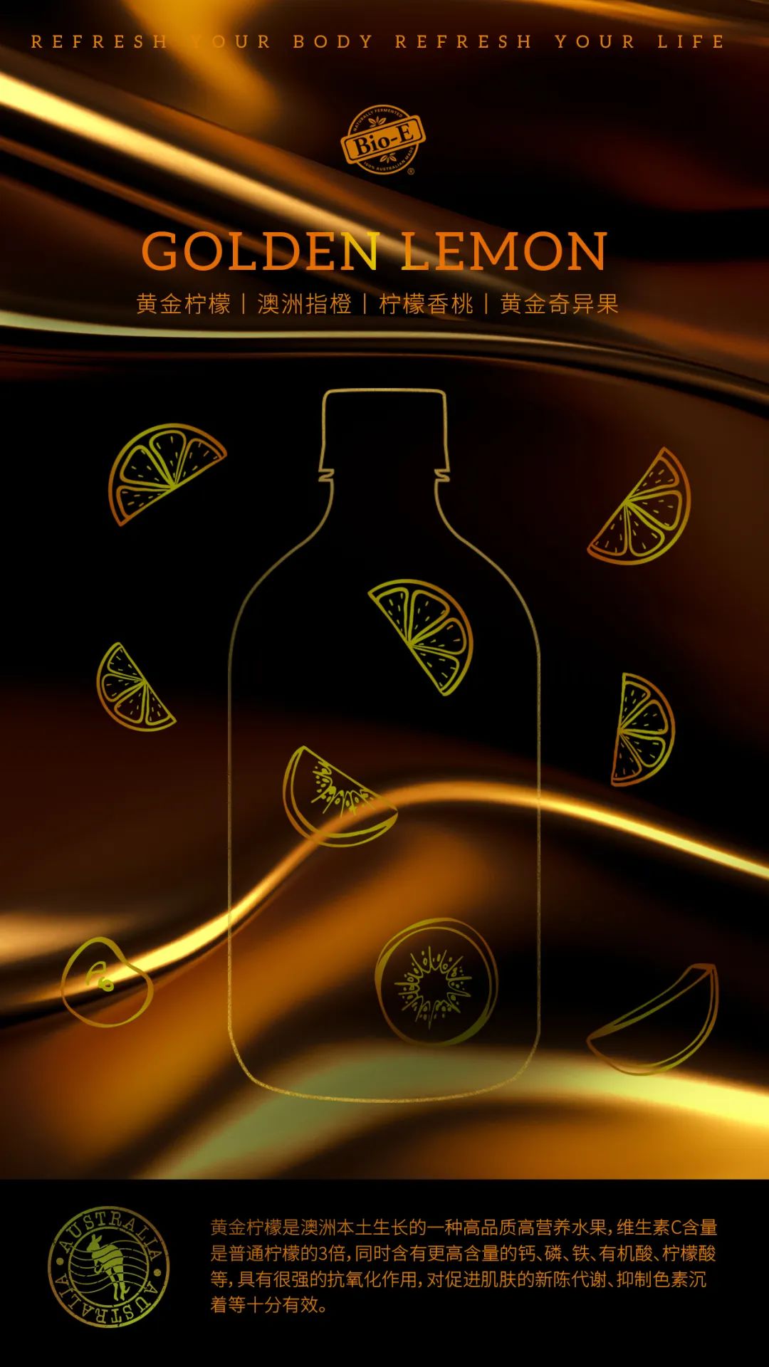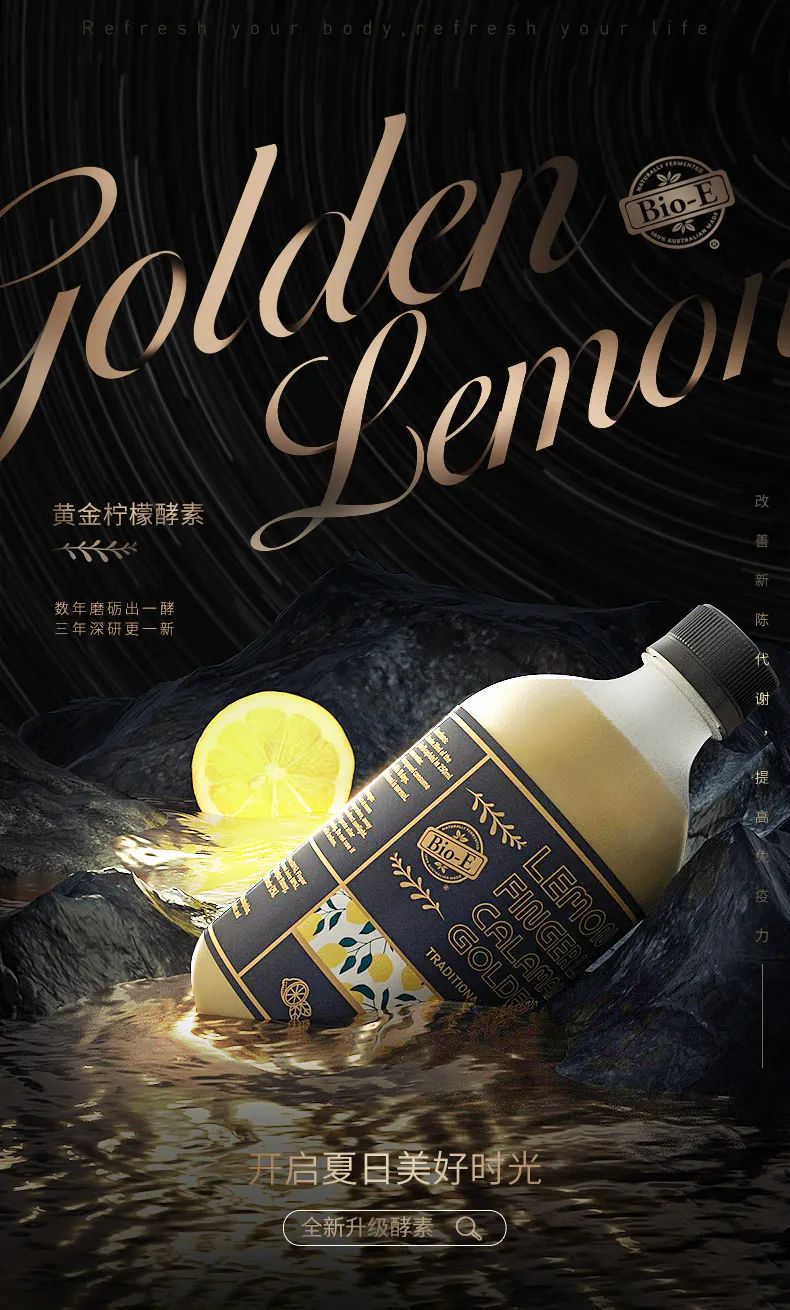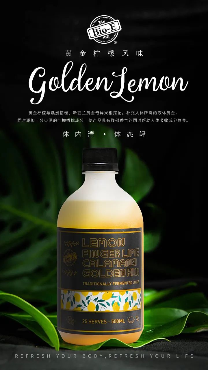 Bio-E升级版黄金柠檬酵素,将经典版中的柠檬品种升级为黄金柠檬,其维生素C和有机酸含量更加丰富。