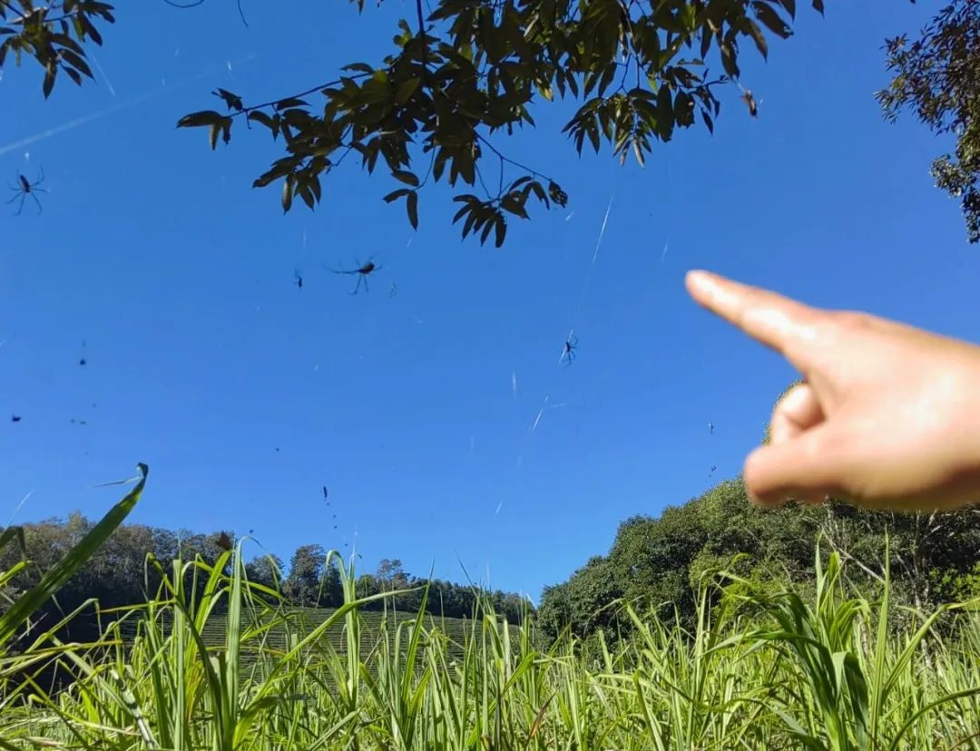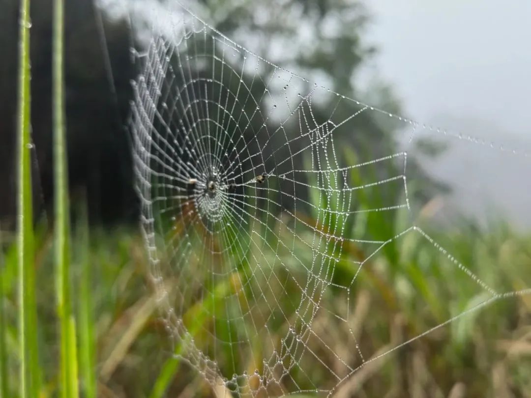 11月明攀师兄出差云南,行走在甘蔗田里时,一张张闪亮的网浮在眼前,凑近一看是挂满露水的蜘蛛网,有的编织在地面,有的张在甘蔗梢上,越往甘蔗地深处走,挂在田里的网就越多,大家不禁惊呼:“哇噻,这简直就是天罗地网!”