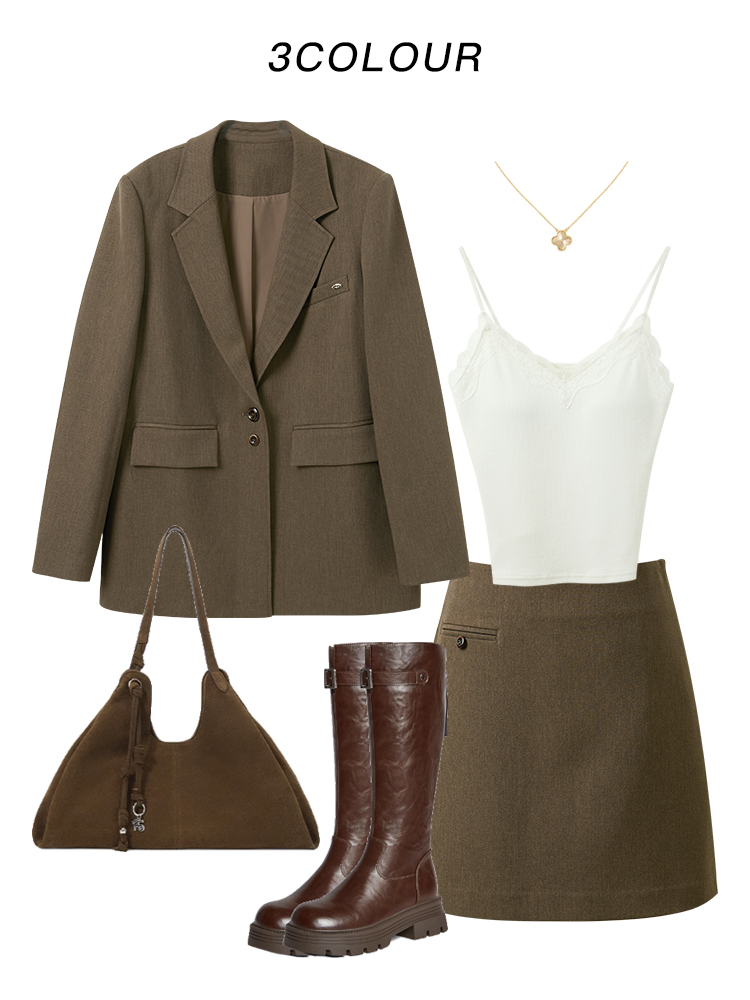 卡其色通勤西装