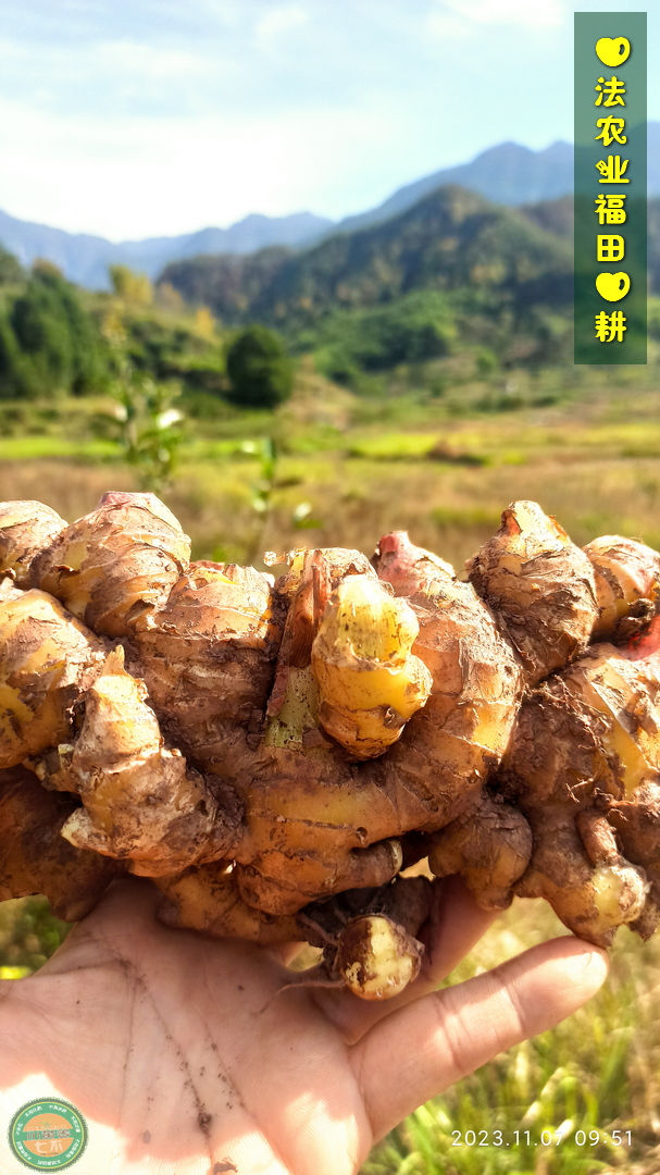 “心法农业、福田心耕”。“七不”小黄姜,姜产品包括生姜、干姜片、姜粉、姜丸和姜膏,纯正无添加剂,由明德CSA生态姜园和明安农业自主种植生产加工销售。