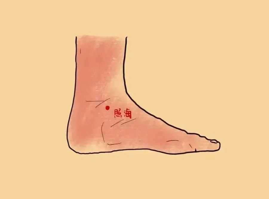 照海穴,属足少阴肾经,也是八脉交会穴之一,通阴跷脉。在足内侧部,内踝尖下1寸,内踝直下方凹陷中。