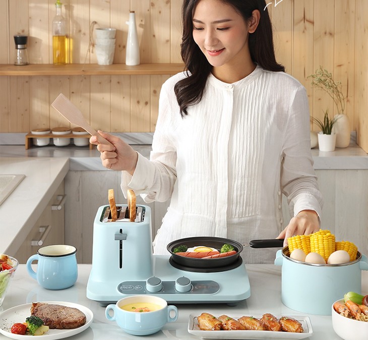 蒸、煮、煎、烙区配备了平底锅、电煮锅和蒸屉,你知道的、不知道的早餐菜单,它几乎都能搞定!