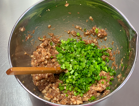 1斤白面,4两5温水,1斤猪肉馅(8两前槽,2两五花);
