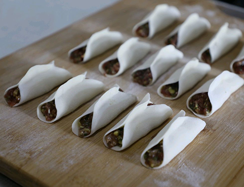2、锅贴一定要都包好再一起下入锅里,不能一边包一边下;