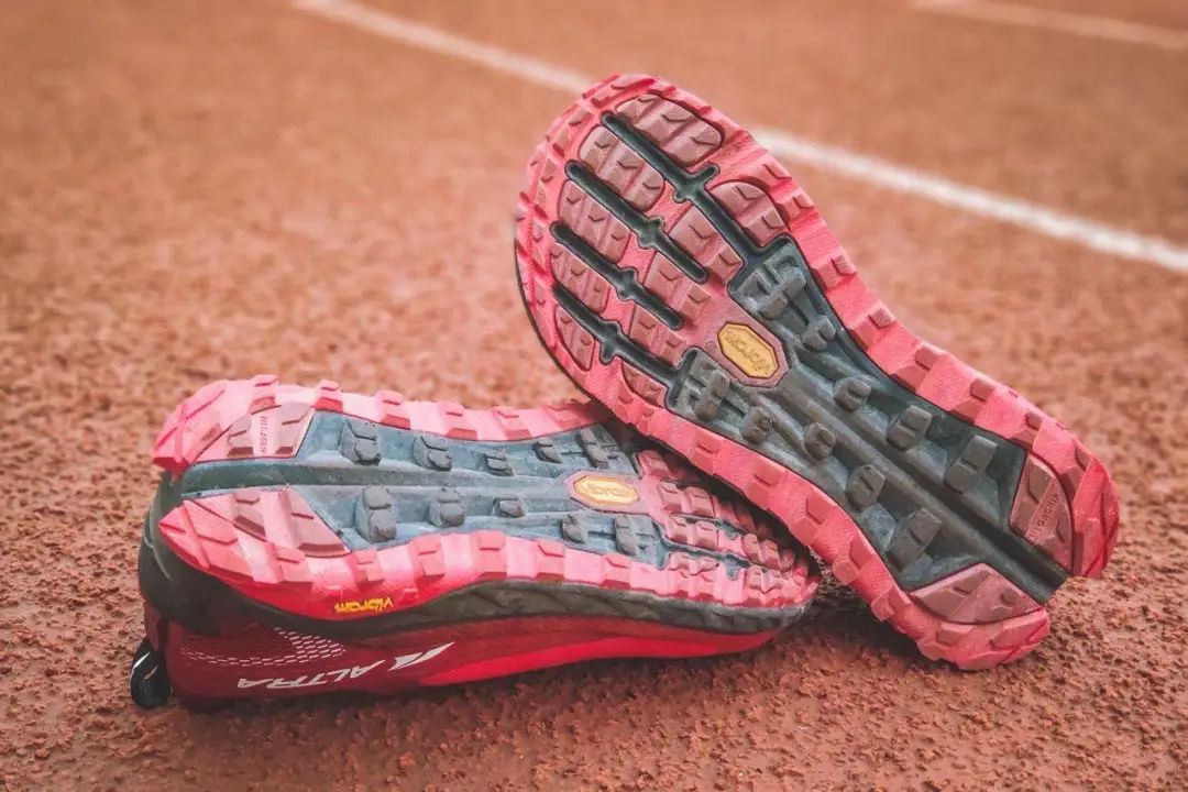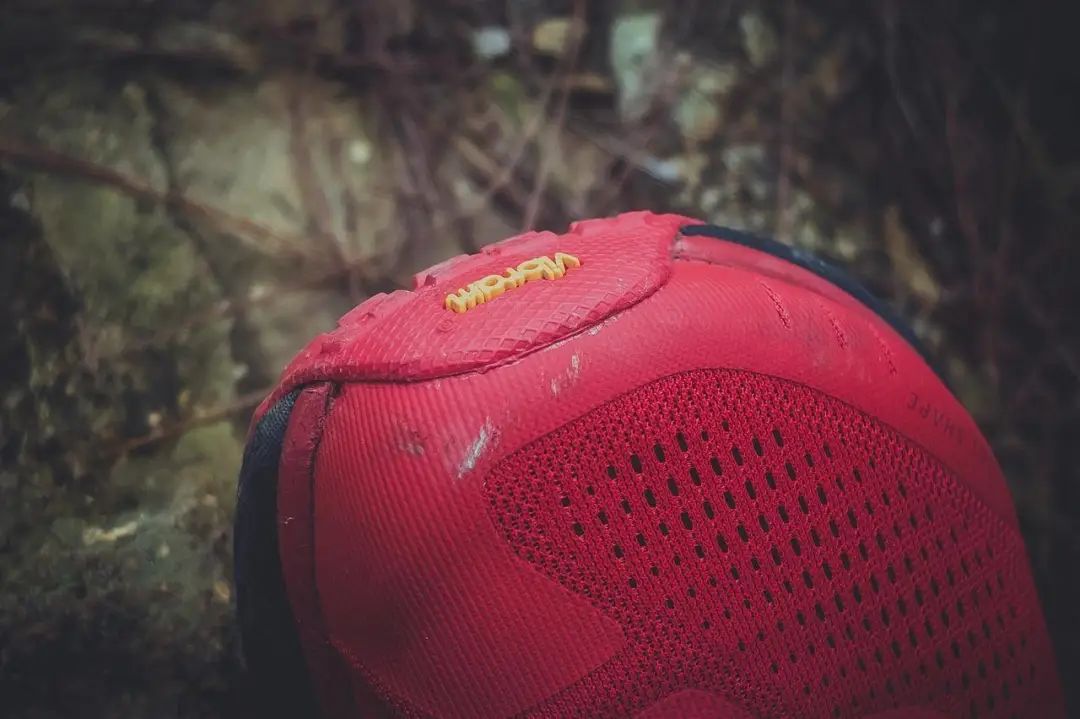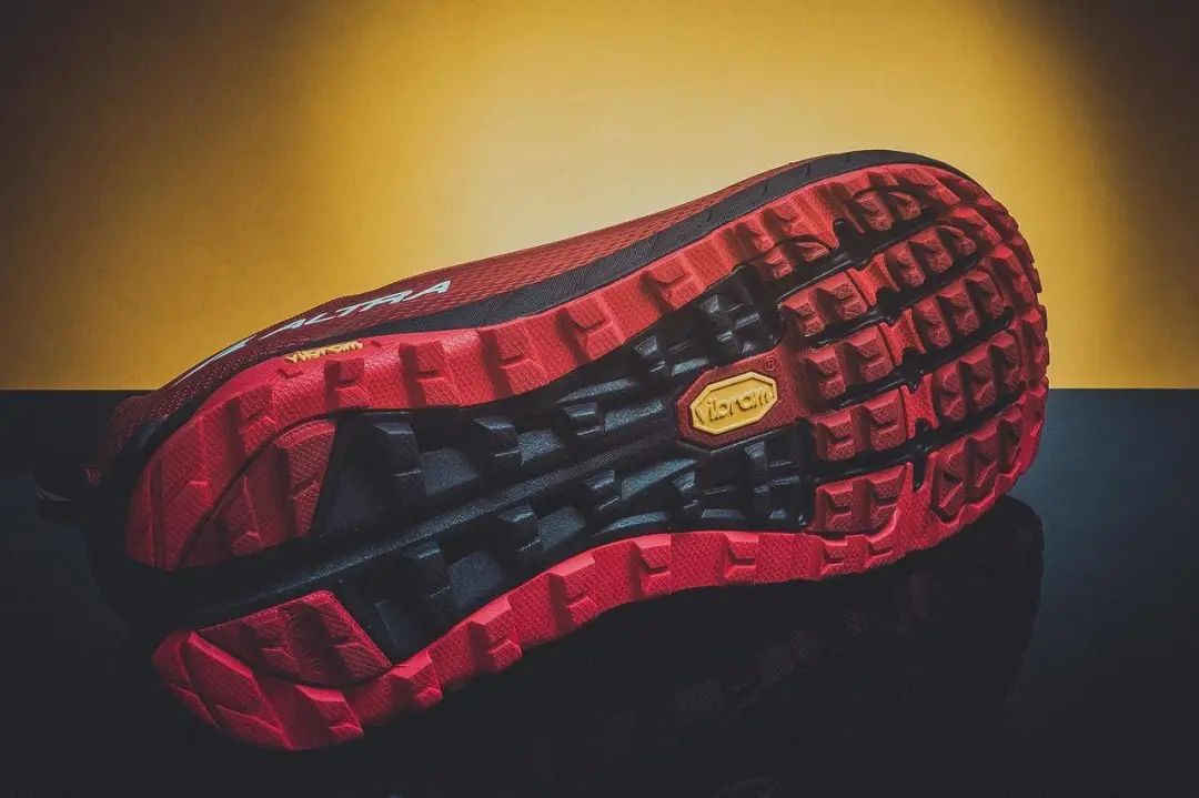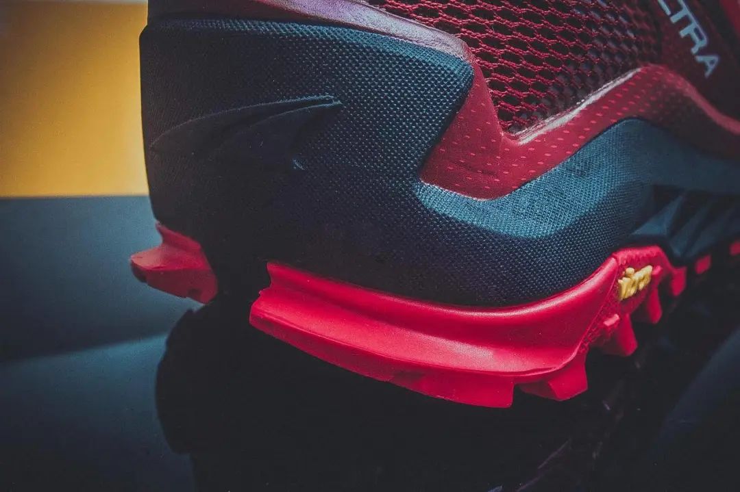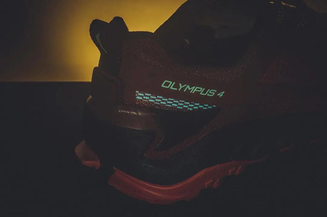 OLYMPUS 4.0依旧是非全掌大底,在损耗高的位置使用红色的VIBRAM MEGAGRIP配方大底,而损耗较低的位置镂空露出黑色的中底,在不降低耐用性的前提下尽最大能力轻量化,大底的耳齿较前几代来说变得更深且更细密,在松软地面会有更好的抓地力。