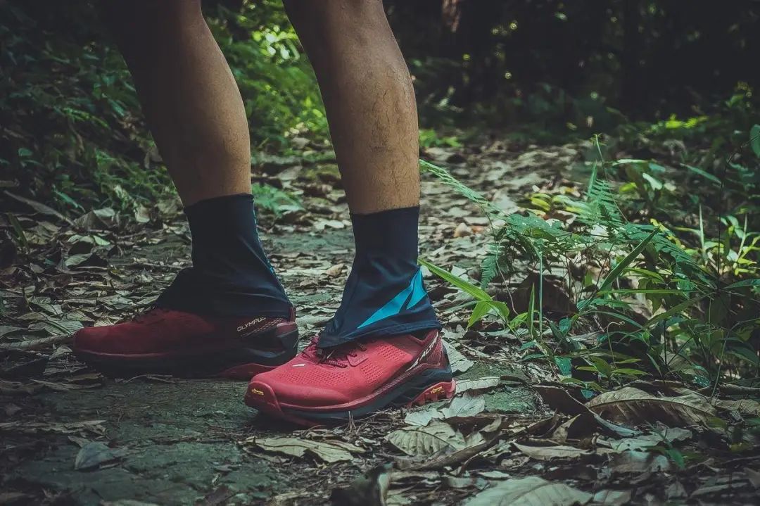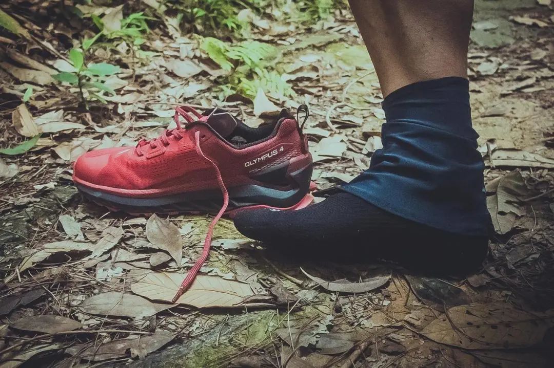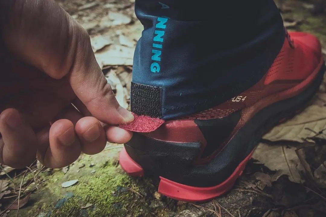 ALTRA的防沙套为质地轻薄的弹力布材料作为本体,不会因为重量而影响跑动动作,即使湿水后也不会增加太多重量,且速干。后跟的文字和侧面的LOGO有反光效果,增加夜间被动可视度,整体比要传统的防沙套要轻便、紧凑,个人觉得唯一不便的就是穿脱防沙套需要脱鞋。