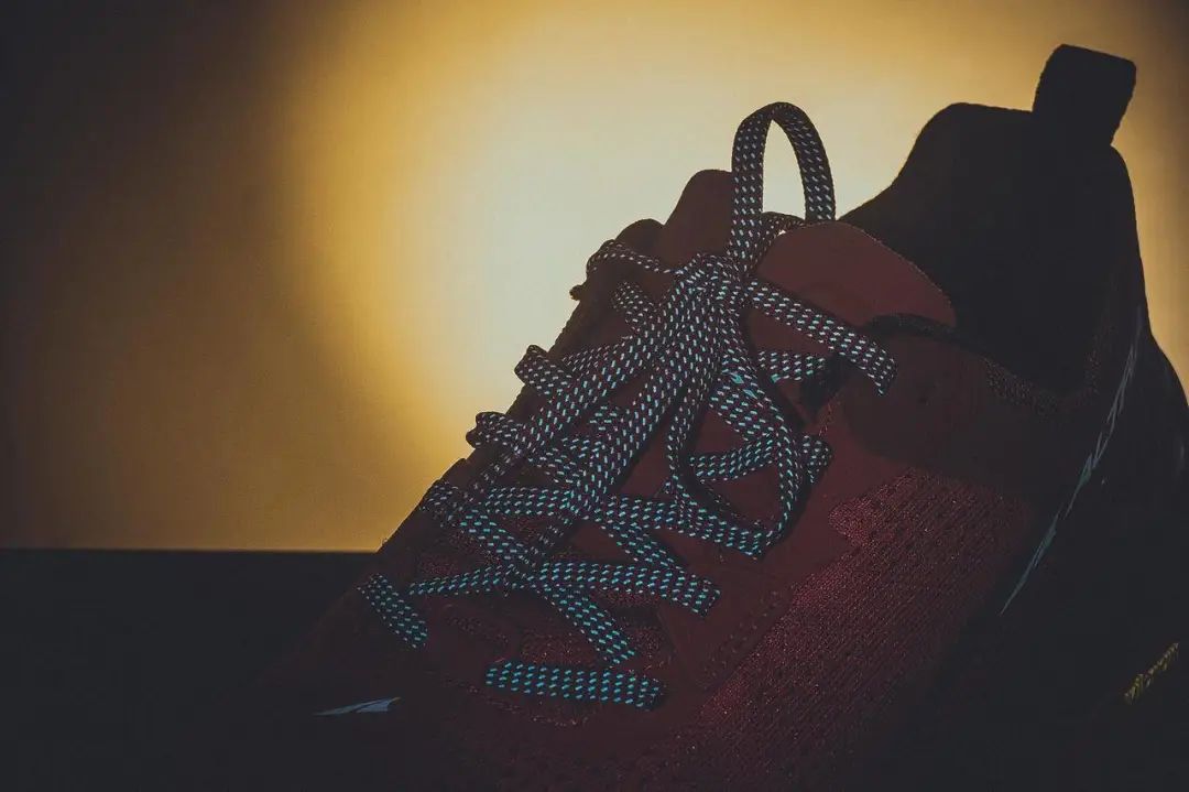 OLYMPUS 4.0的鞋带要给好评,鞋带混纺了反光材料,在夜间有很好的被动可视性,增加安全系数,且由于反光材料的加入鞋带的摩擦力变大,比KING MT的鞋带体验要好太多(泪目)第二个鞋带孔另用两片材料车缝,具体设计意图不得而知。