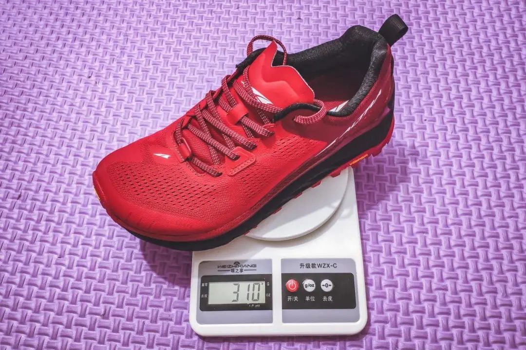 OLYMPUS 4.0 42码单只重量为310g,重量在厚底越野跑鞋中处于平均水平,左右两只鞋重量相差不到5g,工艺控制还算不错。