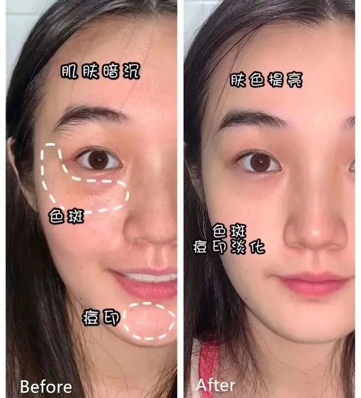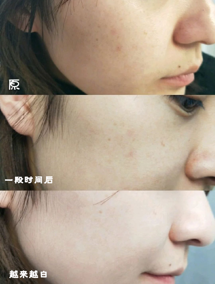坚持一个美白周期,用完脸上变化肉眼可见,真的有种“换了一张脸”的感觉,皮肤白了很多,斑点也淡了很多。