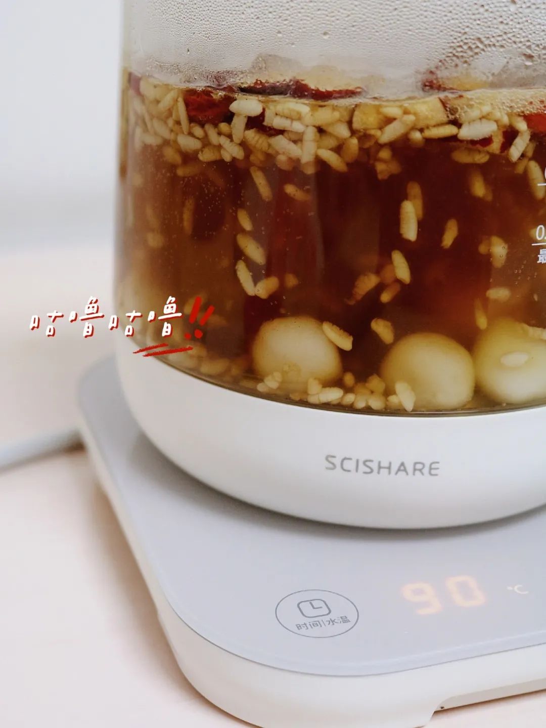 养生壶选择“烧水”选项,盖上盖子煮至水开,喜欢浓一点的可以再煮一遍。