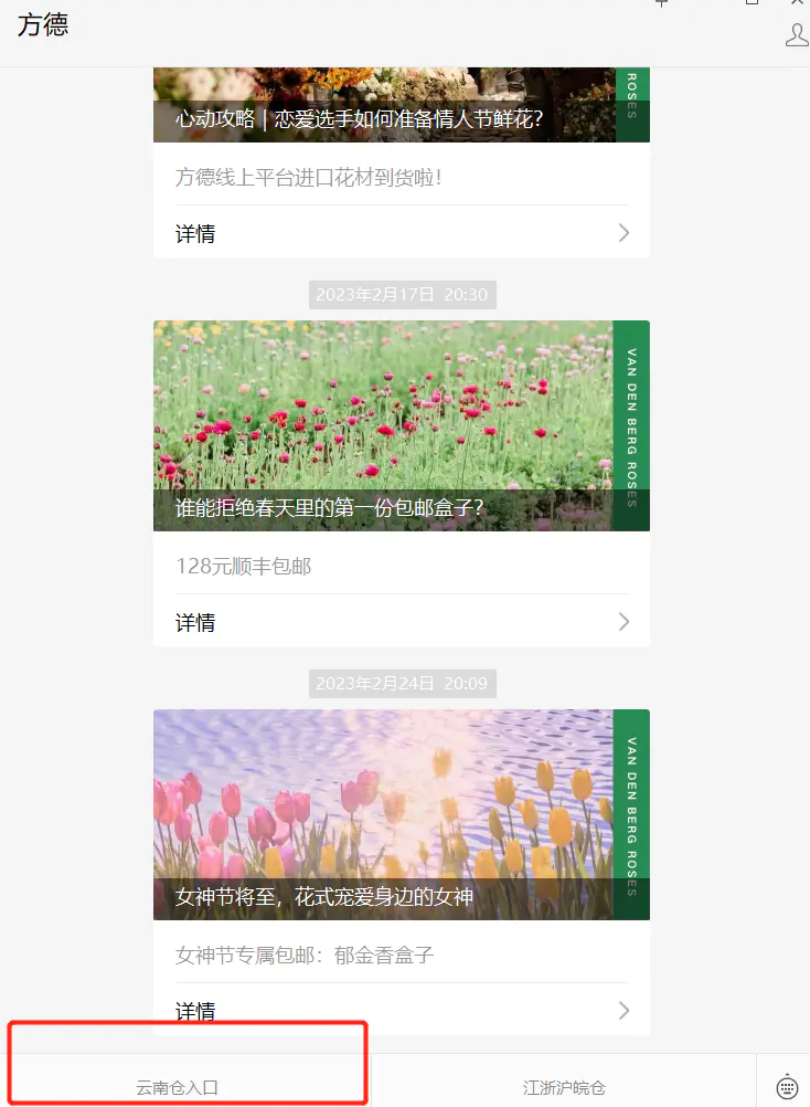 您所处的方德小程序是方德平台江浙沪皖仓;如您不是该区域(江浙沪皖)的用户或提示该区域不配送,请您移步到微信公众号“方德”,关注之后点击云南仓入口,然后就可以愉快地挑选花花!两个仓都属于方德基地直供官方商城!不要迷路哟!